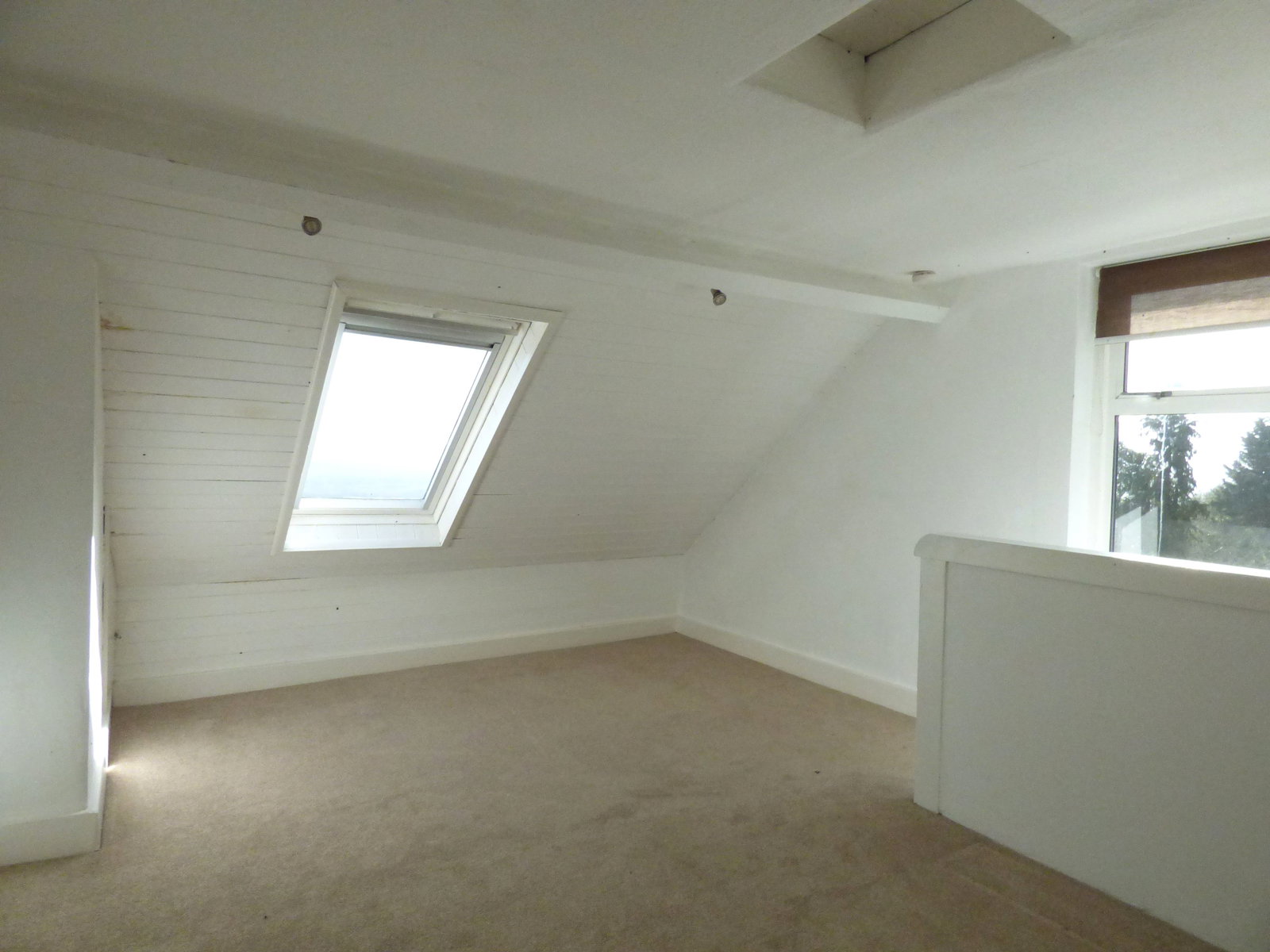 Double glazed window to side and double glazed Velux skylight with internal blind both taking in the fantastic views. Access to loft space, light points and eaves storage.