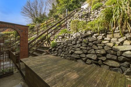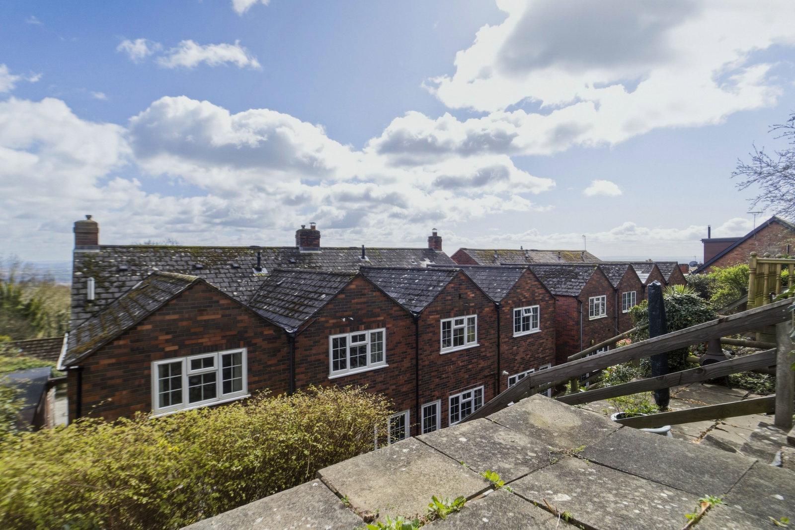 The garden is terraced and enjoys a range of different decked, planted and paved areas and from the top enjoys a wonderful view over the rooftops towards Bredon Hill and beyond. There is a shared pathway which runs to the side and rear of the property which neighbouring properties have right of access over.