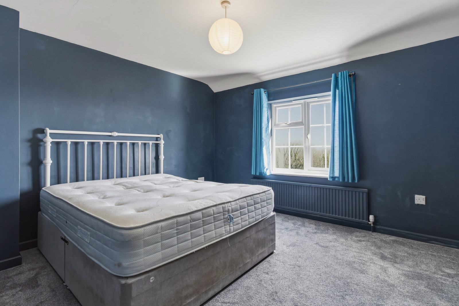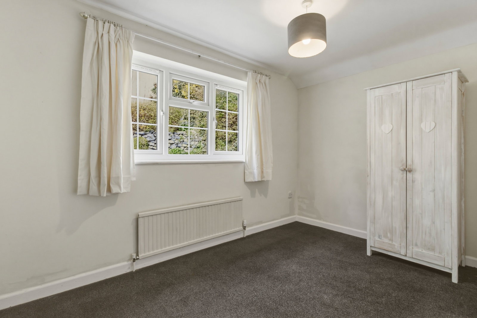 Carpet, double glazed window with lovely views, radiator, pendant light fitting.
