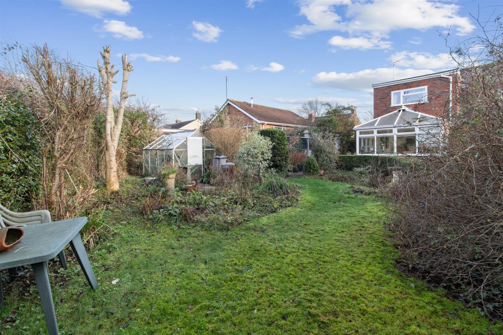 There are well-established gardens to the rear with paved pathways and seating area. The borders are well-stocked with established shrubs and trees. Timber gate gives access to the front of the property and driveway and a timber door leads to the garage. Greenhouse.