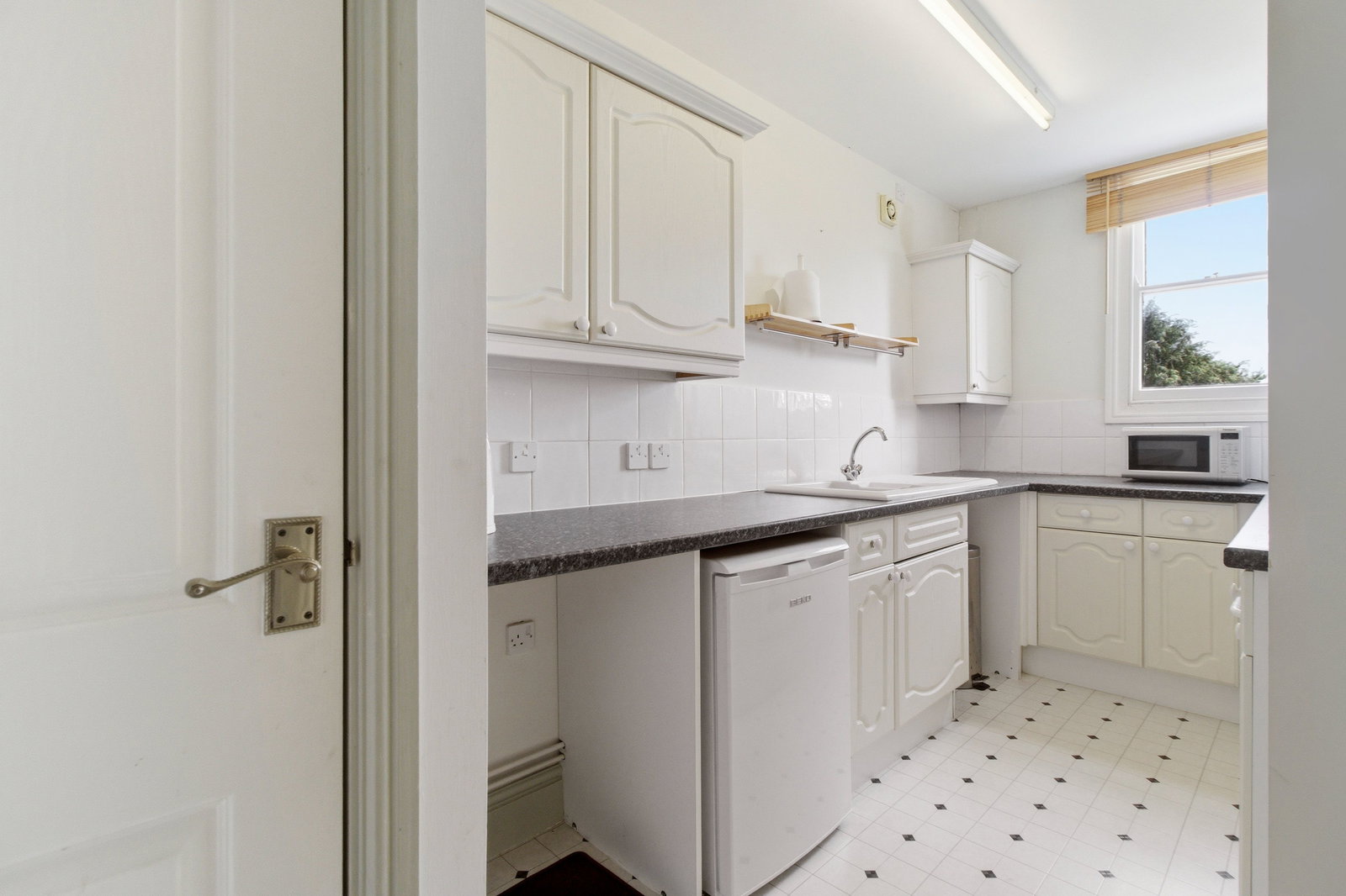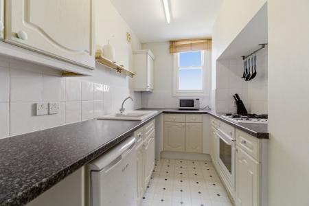 Vinyl flooring, partially tiled walls, range of base and eye level units with worktop over, one and half ceramic sink and drainer, built-in OVEN and gas HOBS, ceiling light point, sash window with views, radiator, space for undercounter fridge, storage cupboard with Worcester Greenstar boiler installed in 2021.