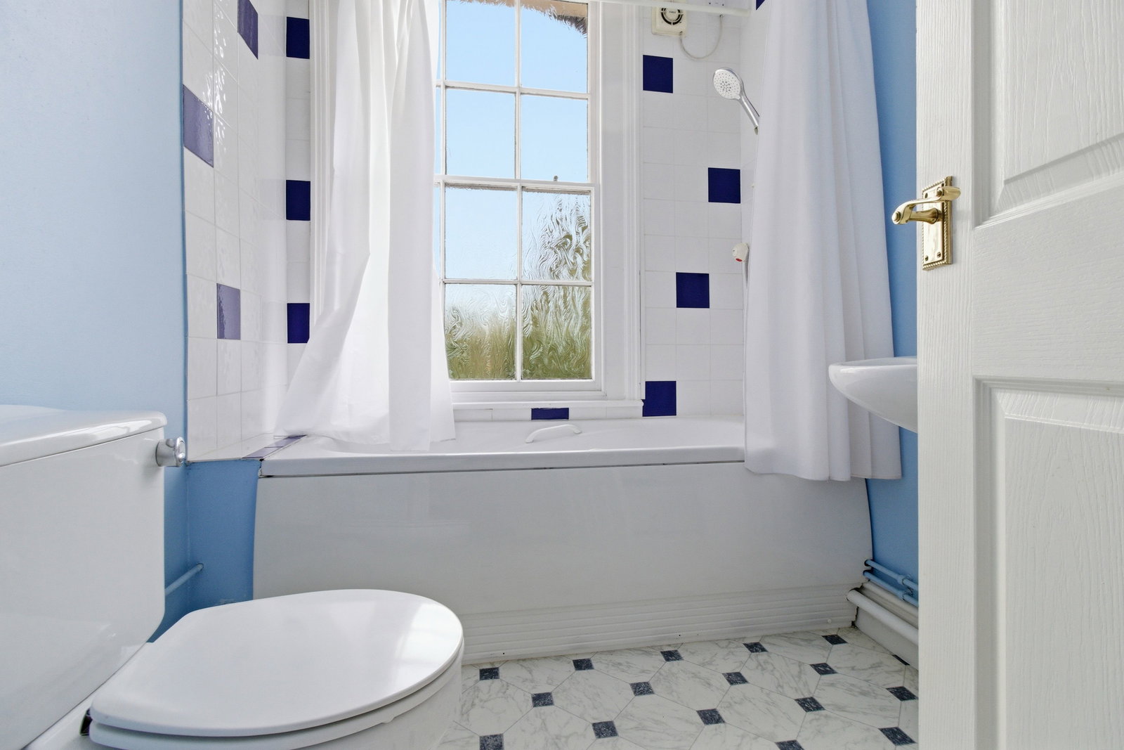 Vinyl flooring, ceiling light fitting, panelled bath with shower, close coupled WC, pedestal wash hand basin, extractor fan, obscured sash window, radiator and shaving point.