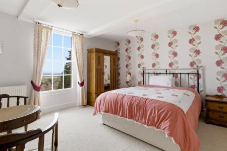 Carpet, two ceiling light fittings, large sash window with beautiful views towards the Severn Valley and beyond, radiator.