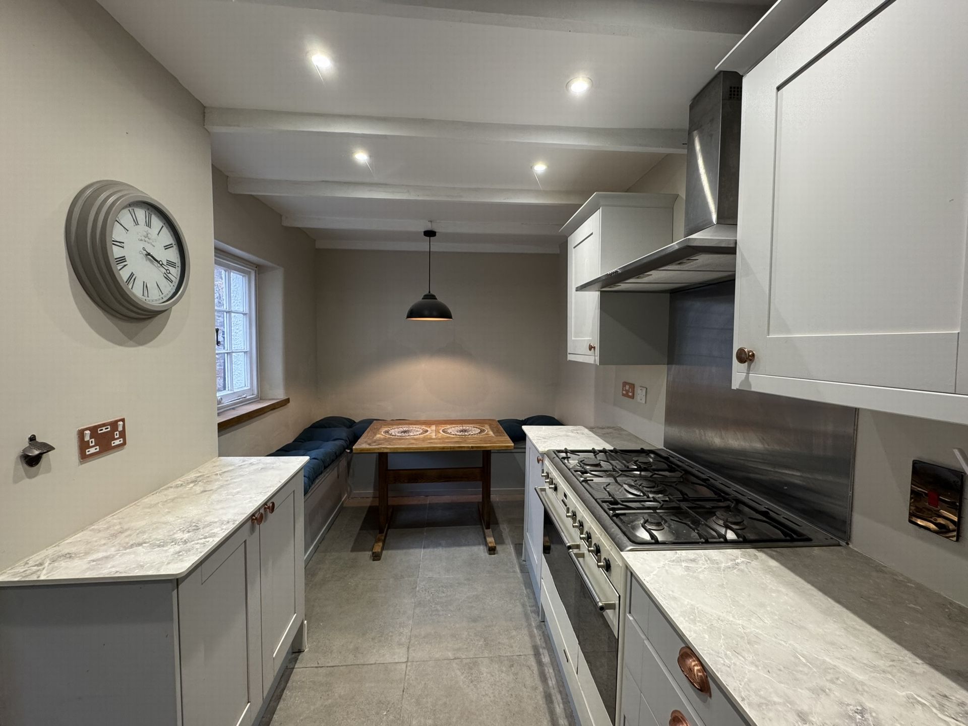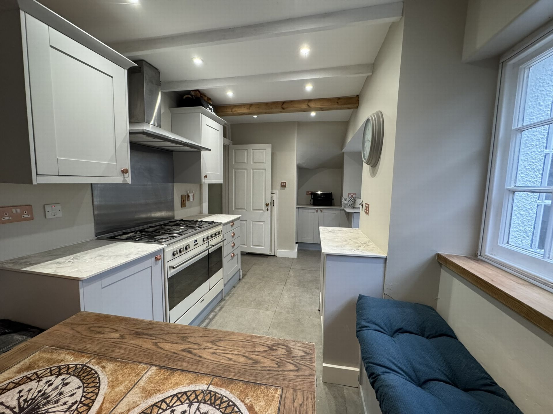The range cooker is run by propane gas with cylinders stored in the side courtyard.