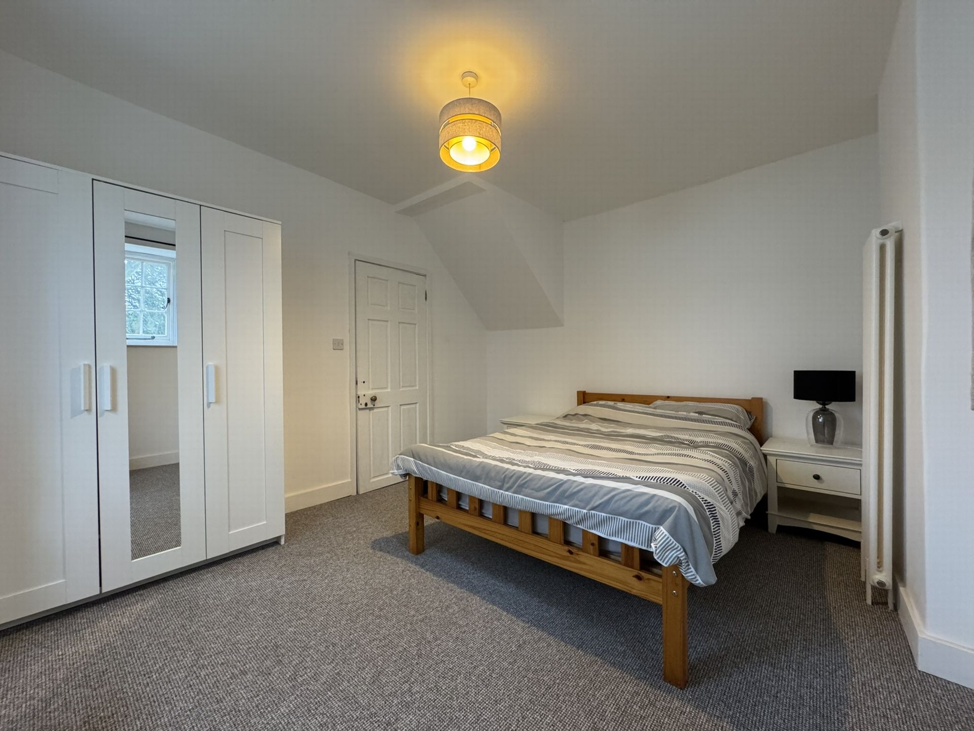 BEDROOM: Window to the front with views towards the church, window to the side and electric radiator.