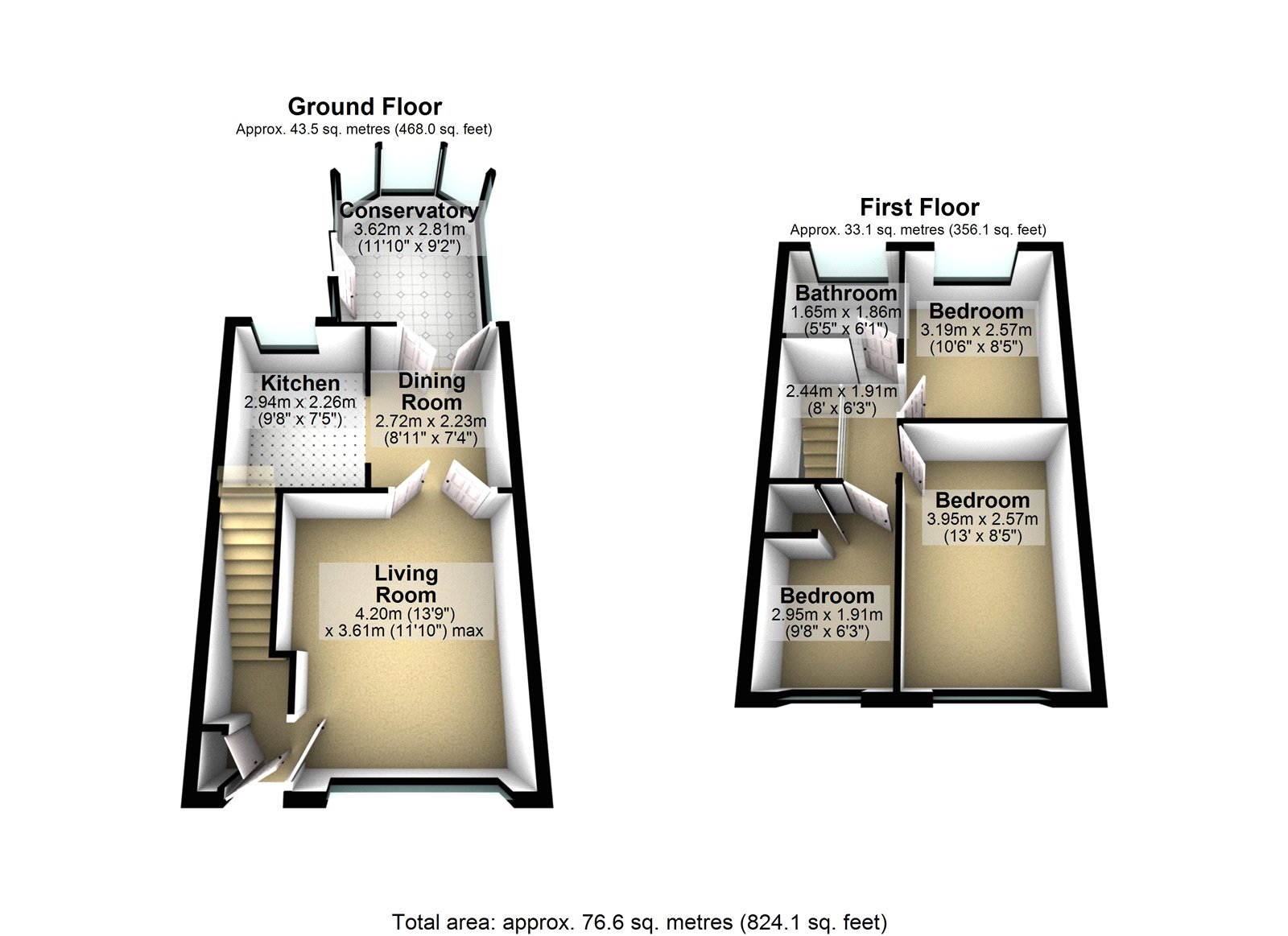 Internally the accommodation covers approximately just under 825sqft of living space, comprising of entrance hall, lounge, dining room, MODERN FITTED KITCHEN, conservatory, THREE BEDROOMS and family bathroom suite.