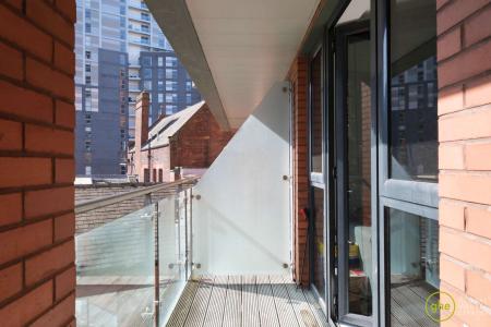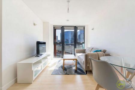 Located on the second floor, the apartment comprises a welcoming hallway leading into the open-plan living and dining area, complete with a sleek fitted kitchen designed for both comfort and functionality. The living room opens up to a private balcony, where you can enjoy stunning views over the River Irwell, creating a perfect setting for both relaxing and entertaining. Large double-glazed windows further enhance the space, allowing an abundance of natural light throughout.