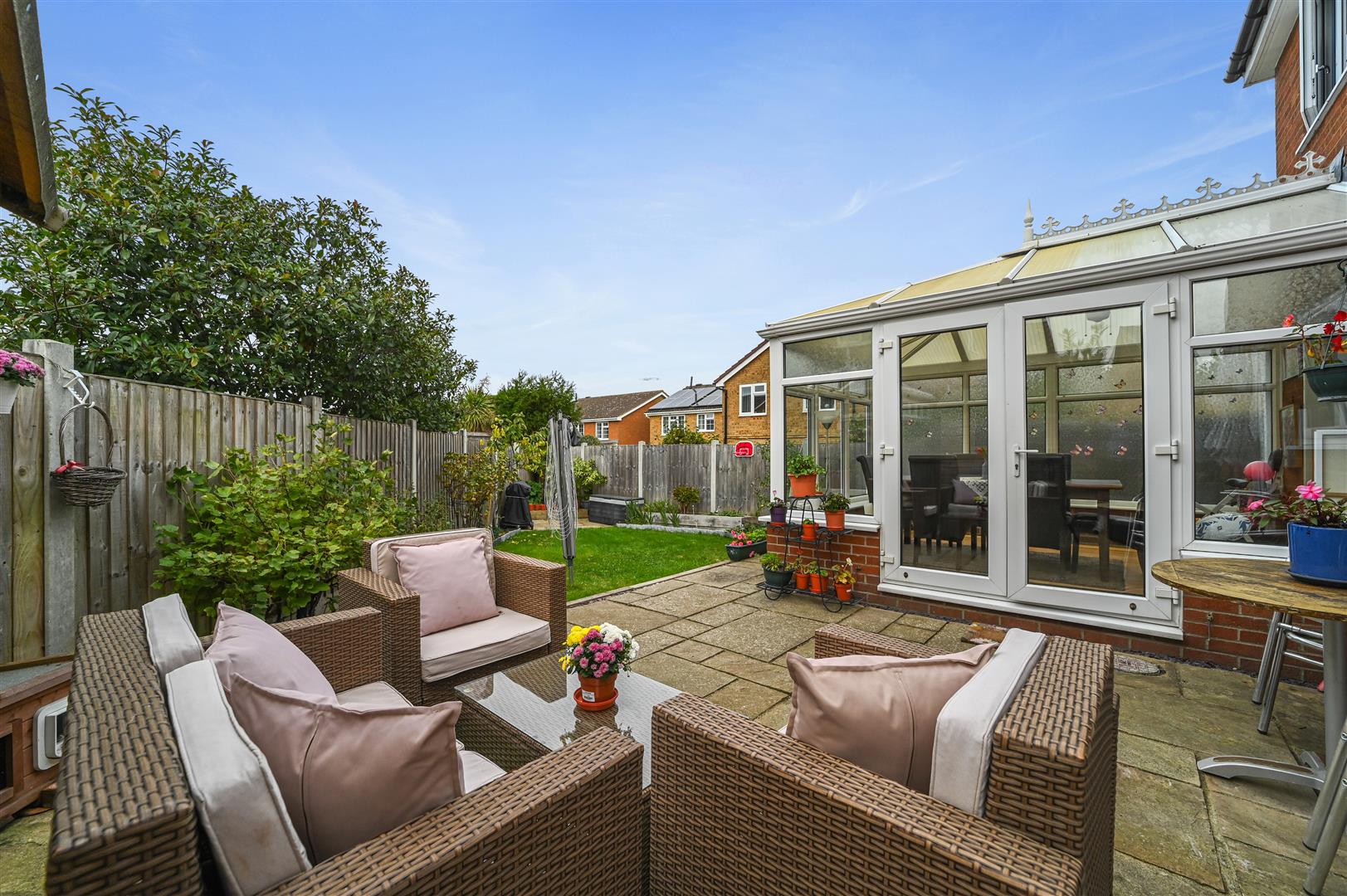 Upon entering, the welcoming hallway ushers you into a spacious living room, with a feature gas fireplace, bathed in natural light from the charming bay window. Adjacent to this, the dining room offers an intimate setting for family meals and effortlessly extends into the conservatory - a serene spot for relaxation overlooking the enclosed rear garden. Culinary enthusiasts will appreciate the well-appointed kitchen, which flows into a practical utility room and a downstairs WC, ensuring everyday functionality.