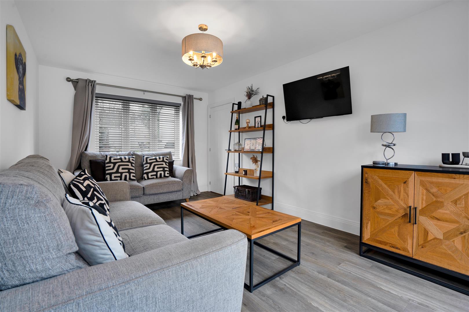 The living room is bright and airy, benefiting from a dual aspect with a front-facing window and double doors that open directly onto a beautifully landscaped rear garden. The stunning kitchen/dining room is designed for both style and functionality, featuring stone work surfaces and essential integrated appliances including a fridge freezer, washing machine, and dishwasher, providing a seamless and enjoyable culinary experience.