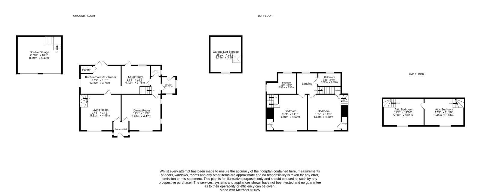 A gravelled driveway sweeps to the side of the property, leading to a substantial detached double garage with eaves storage – ideal for conversion subject to permissions - above, offering ample space for vehicles and additional storage. This well-considered outbuilding enhances the practicality of the home while complementing its traditional charm.