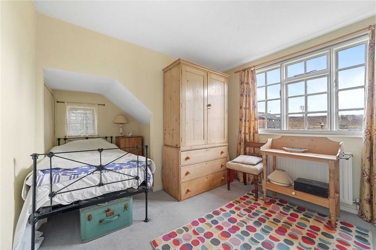 The first floor offers a generous arrangement of rooms, each exuding the character and charm of this historic farmhouse. The principal bedroom is an expansive and tranquil space, with a feature fireplace, exposed timber detailing, and soft natural light filtering through large sash windows that frame views over the surrounding countryside. A second double bedroom, equally well-proportioned, enjoys a similar outlook, while a third bedroom provides a cosy retreat.