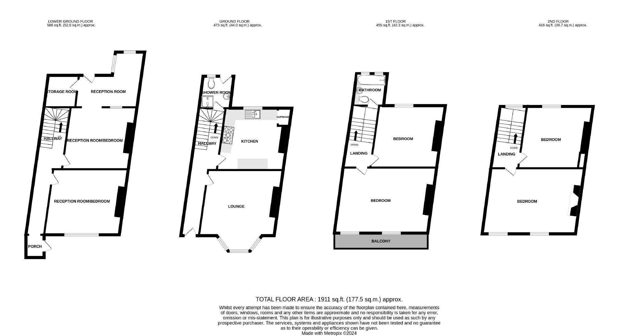 - Balcony to first floor