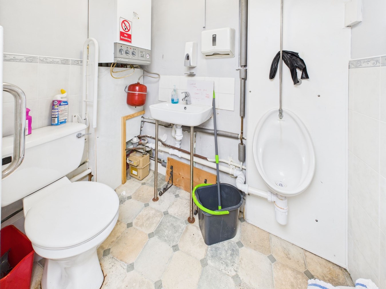 Accessed via exterior side passageway. With urinal, W.C. and wash hand basin. Wall mounted gas fired boiler. Gas meter.