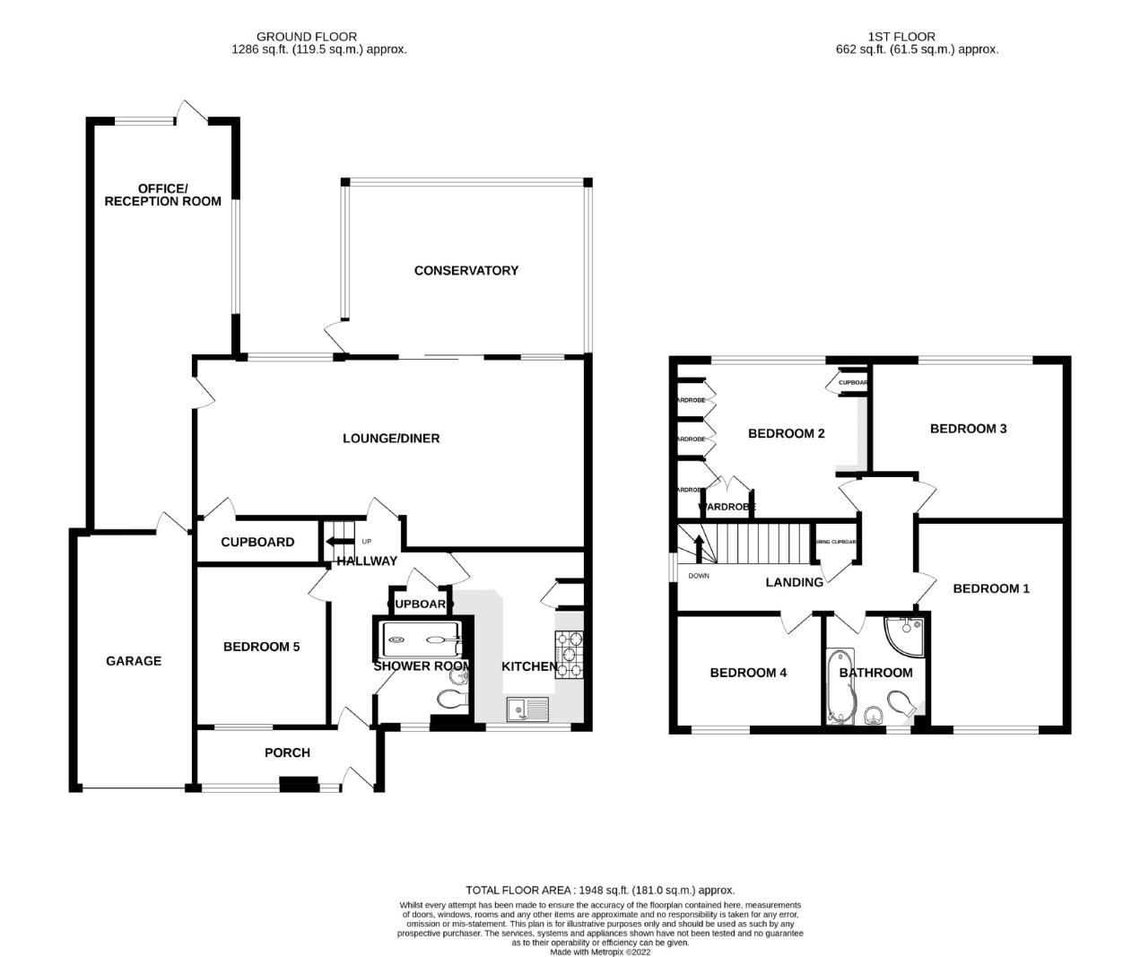 - Five bedrooms