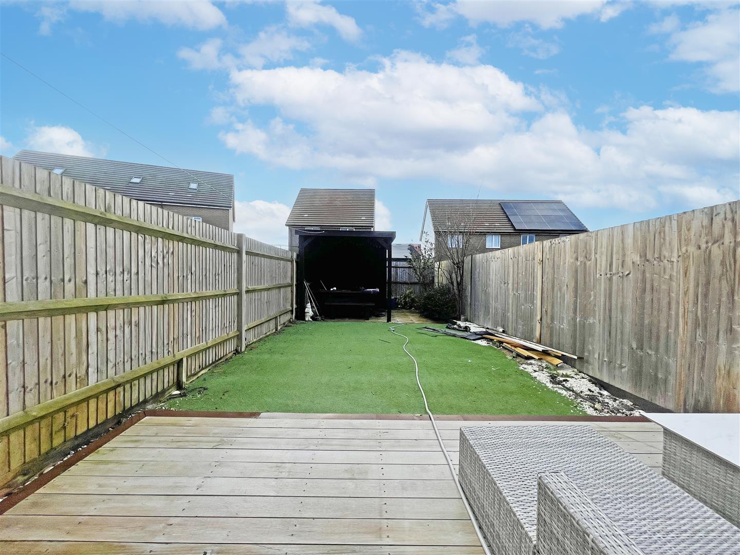 Step outside to discover a low-maintenance garden, ideal for those who prefer to spend their time enjoying the outdoors rather than tending to extensive gardening. This outdoor space offers a pleasant area for alfresco dining or simply unwinding in the fresh air.