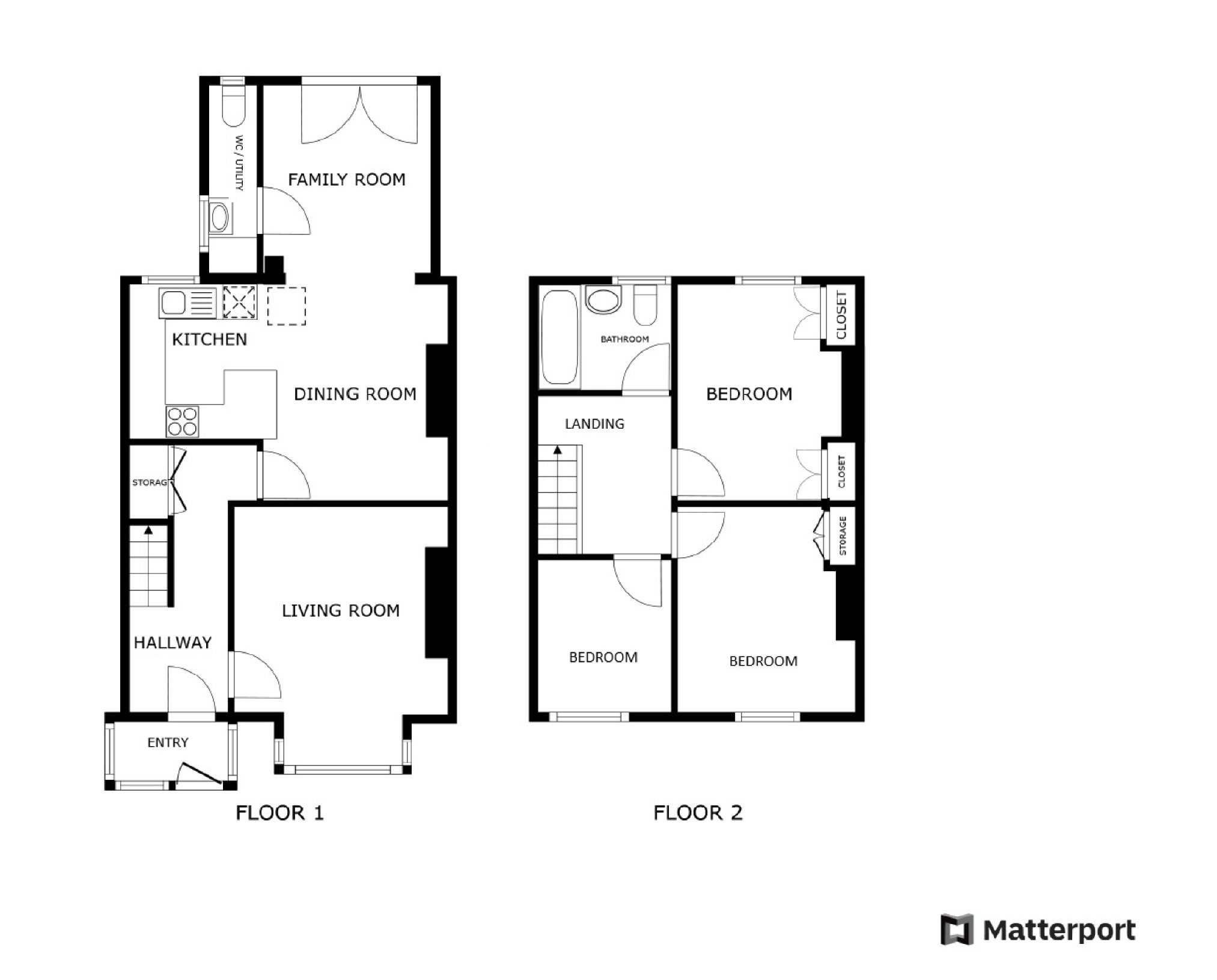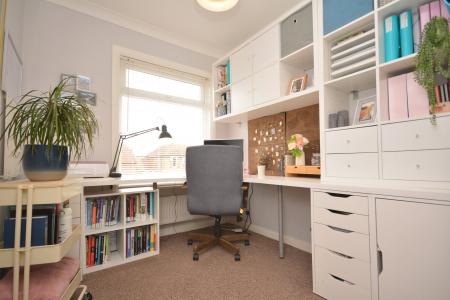 The ground floor features a bright lounge with bay window, a contemporary kitchen/diner with integrated appliances, and a versatile second reception room opening onto a south-facing garden. A handy utility and cloakroom complete the ground floor.