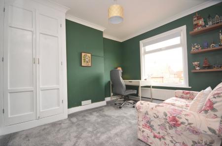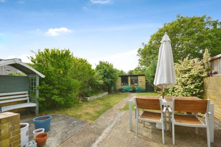 Upstairs offers three well-proportioned bedrooms, a family bathroom, and access to a fully boarded loft with potential for conversion (subject to planning). Outside, the garden is mainly laid to lawn with a paved patio and outbuilding. The front provides off-street parking.