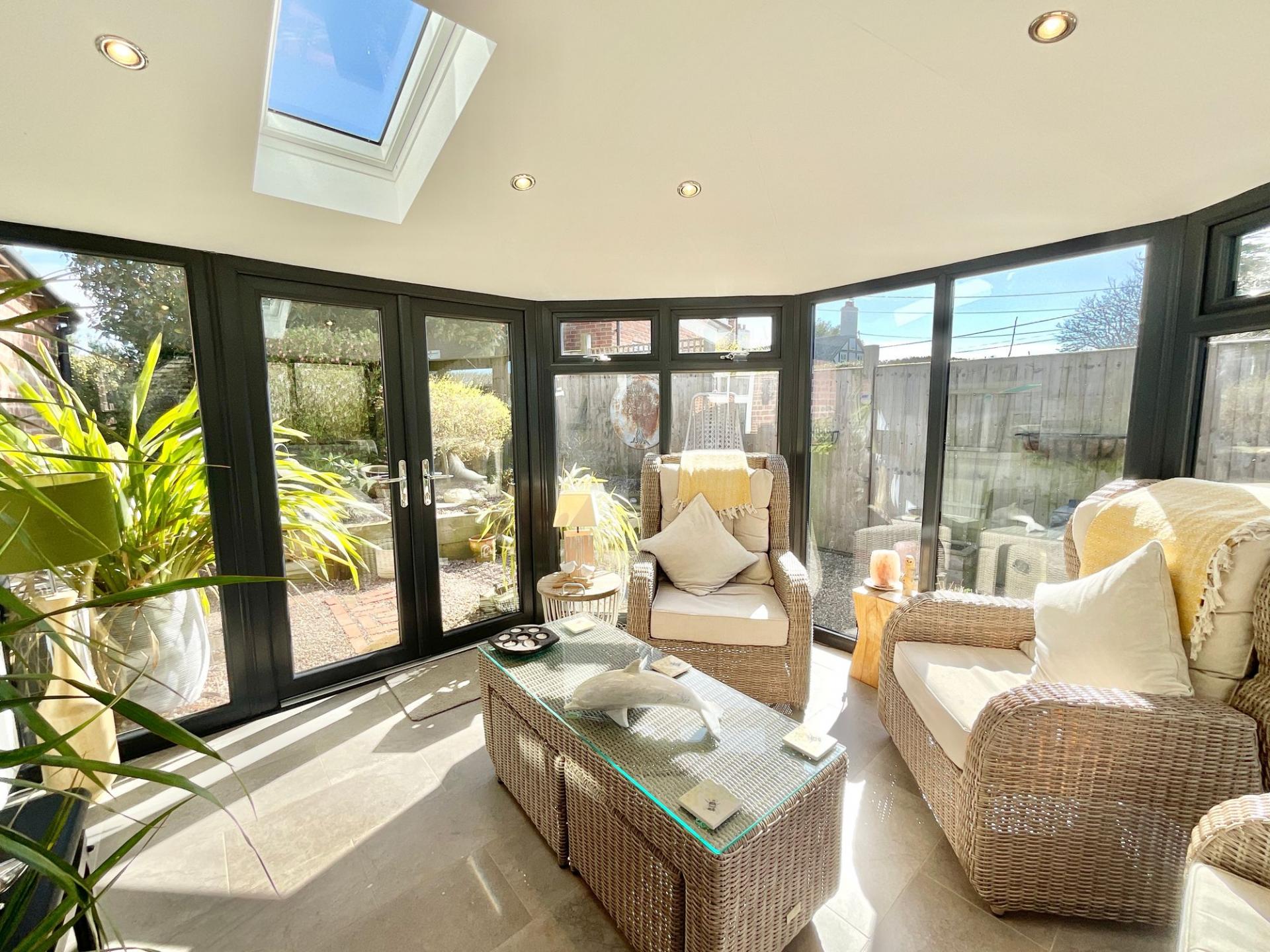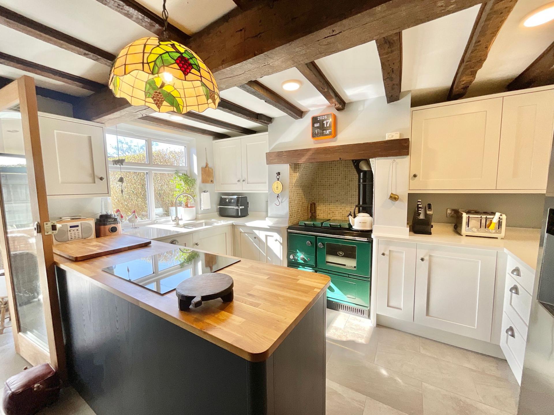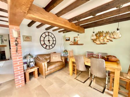 - Following through the home you'll enter a second living space with log burning fire place, which flows through to an open plan kitchen and dining space, equipped with top of the range appliances.