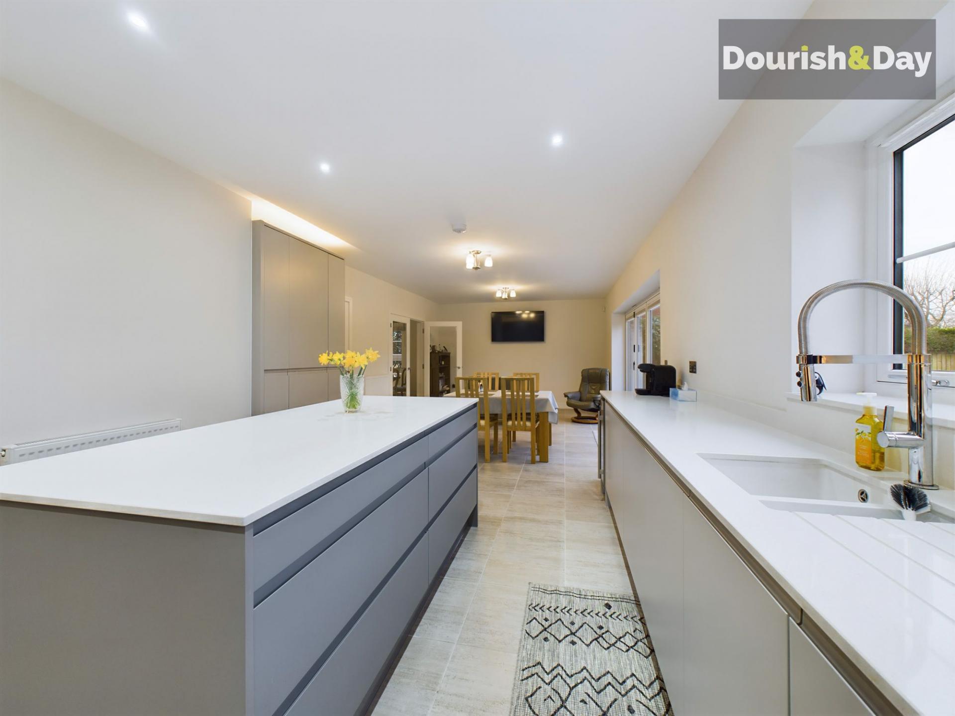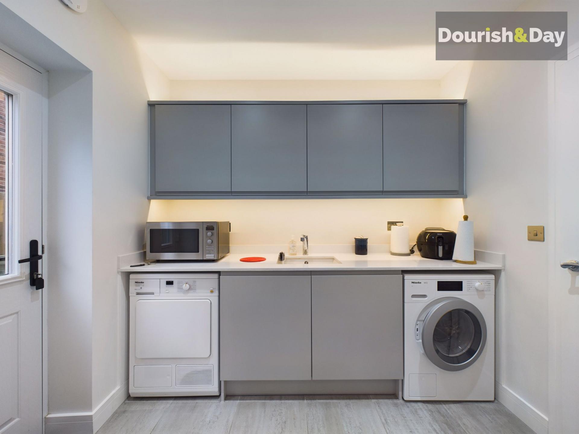 This stunning property offers everything you need for comfortable and stylish living. The moment you step inside, you’ll be greeted by a bright hallway with tiling to the floor which continues into the kitchen and WC. The large bright and airy lounge is a perfect place to relax or entertain guests and has double doors to the dining area of the kitchen. This expansive space is the heart of the property which boasts a beautifully designed layout featuring high-end appliances including integrated double oven, microwave, five burner induction hob, full height fridge, full height freezer, dishwasher and wine cooler. The kitchen is complemented by a spacious family area, ideal for casual gatherings and daily living. The real highlight of this space is the bi-fold doors that open to the garden, seamlessly blending indoor and outdoor living, making it perfect for entertaining. For added convenience, there is a utility room providing extra storage and space for laundry, and a guest WC.
