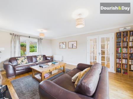 - Large Living Room With Feature Fire Place & French Doors To Rear Garden