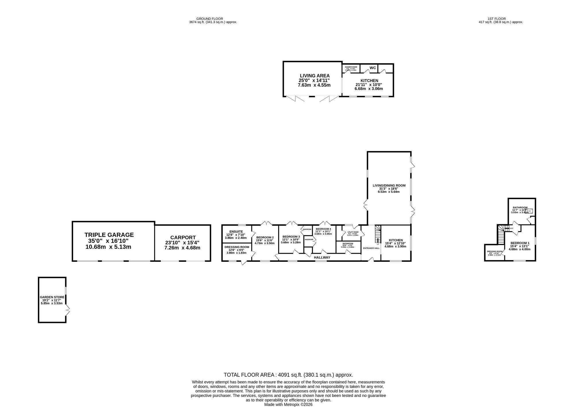 - Inside the main home find four double bedrooms, three bathrooms and a generous living area.
