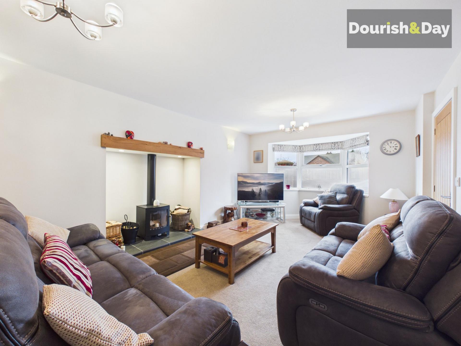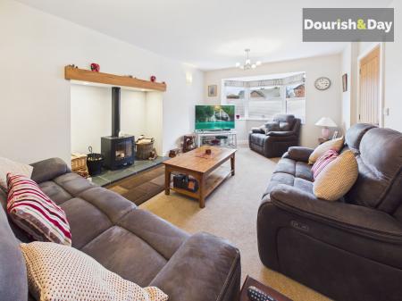 - Elegant Living Room With Bay Window & Log Burner