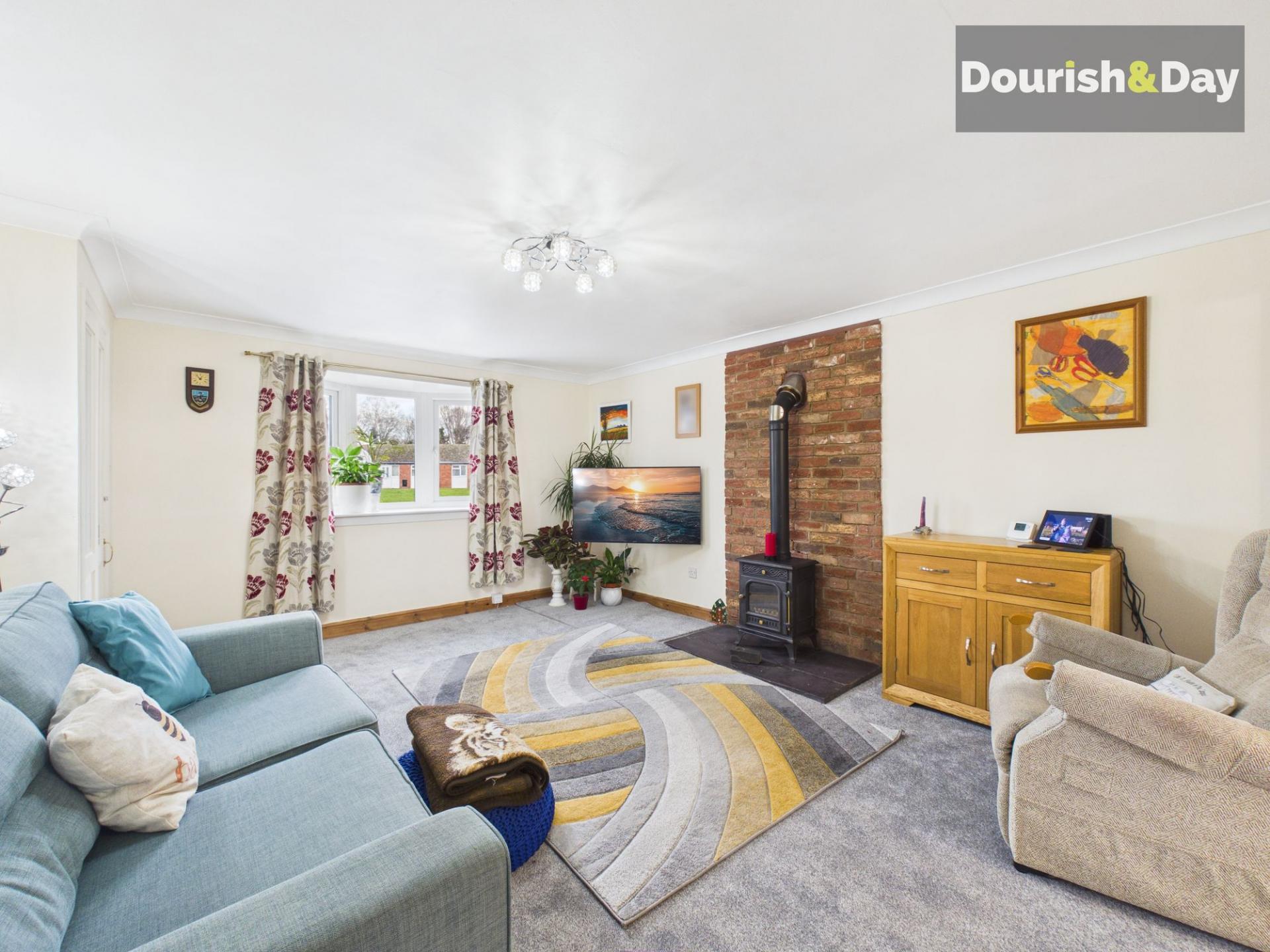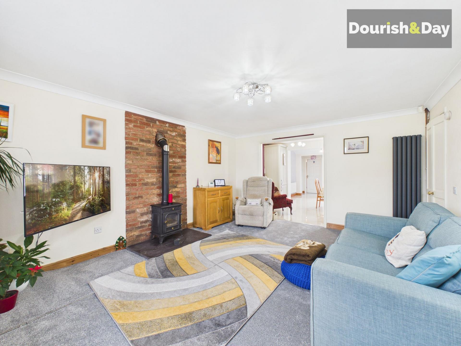 - Large Living Room With Feature Log Burner.