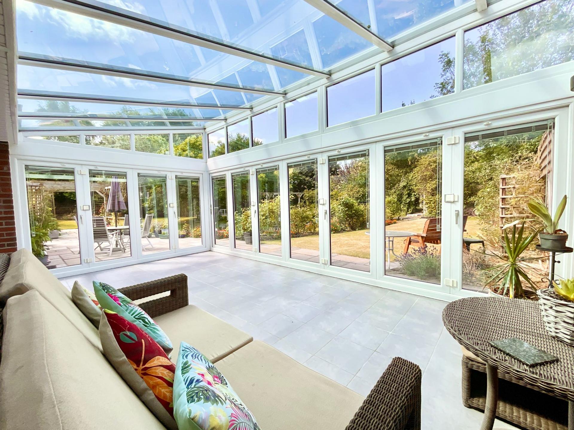 - Three reception rooms, two sitting/sun rooms overlooking the stunning garden and a glass garden room with bifolding doors and integral blinds, that push right back opening the space right up.