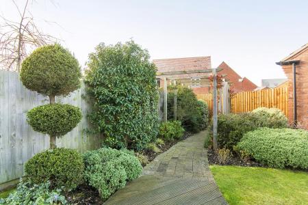 Front - Paved pathway and wrought iron fencing. Side pedestrian access to the rear garden.