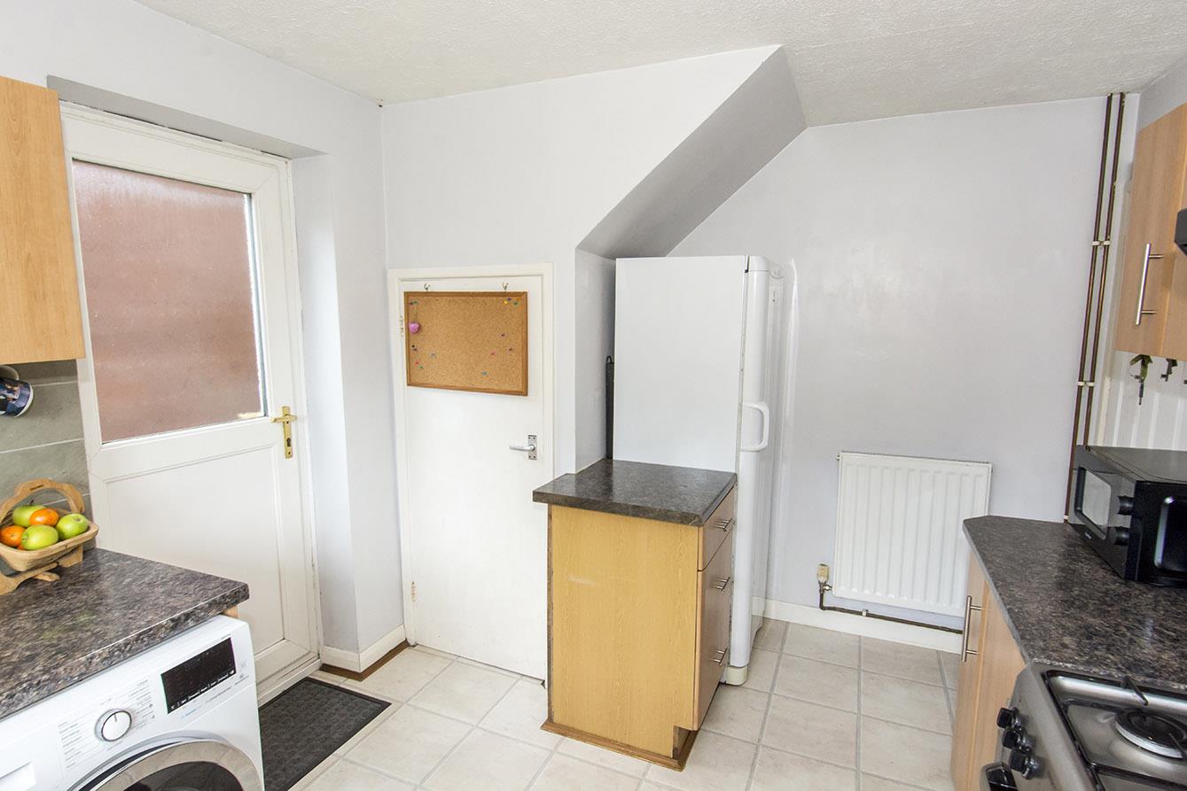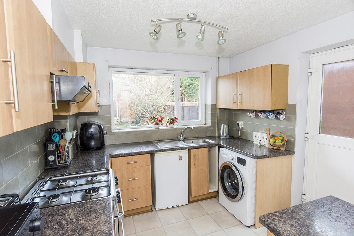 Kitchen/Breakfast Room - 3.51m x 2.77m (11'6" x 9'1") - Fitted base and wall units. Laminated work surfaces with complimentary tiled splashbacks. Fitted double oven and gas hob with extractor fan over. Under stairs spacious storage cupboard. Opaque double-glazed door leading outside. Double-glazed window to the rear elevation. Stainless steel single sink and drainer. Laminate tiled flooring.