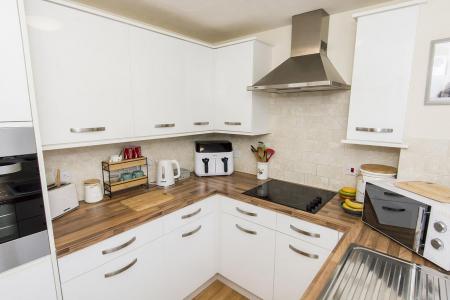 Kitchen - UPVC double-glazed window. Fitted range of wall and floor mounted units. Work tops and stainless steel sink with mixer tap and drainer. Ceramic hob with extractor hood over. Electric high level oven. Integrated fridge. Integrated freezer. Tiled splash backs. Electric heater.