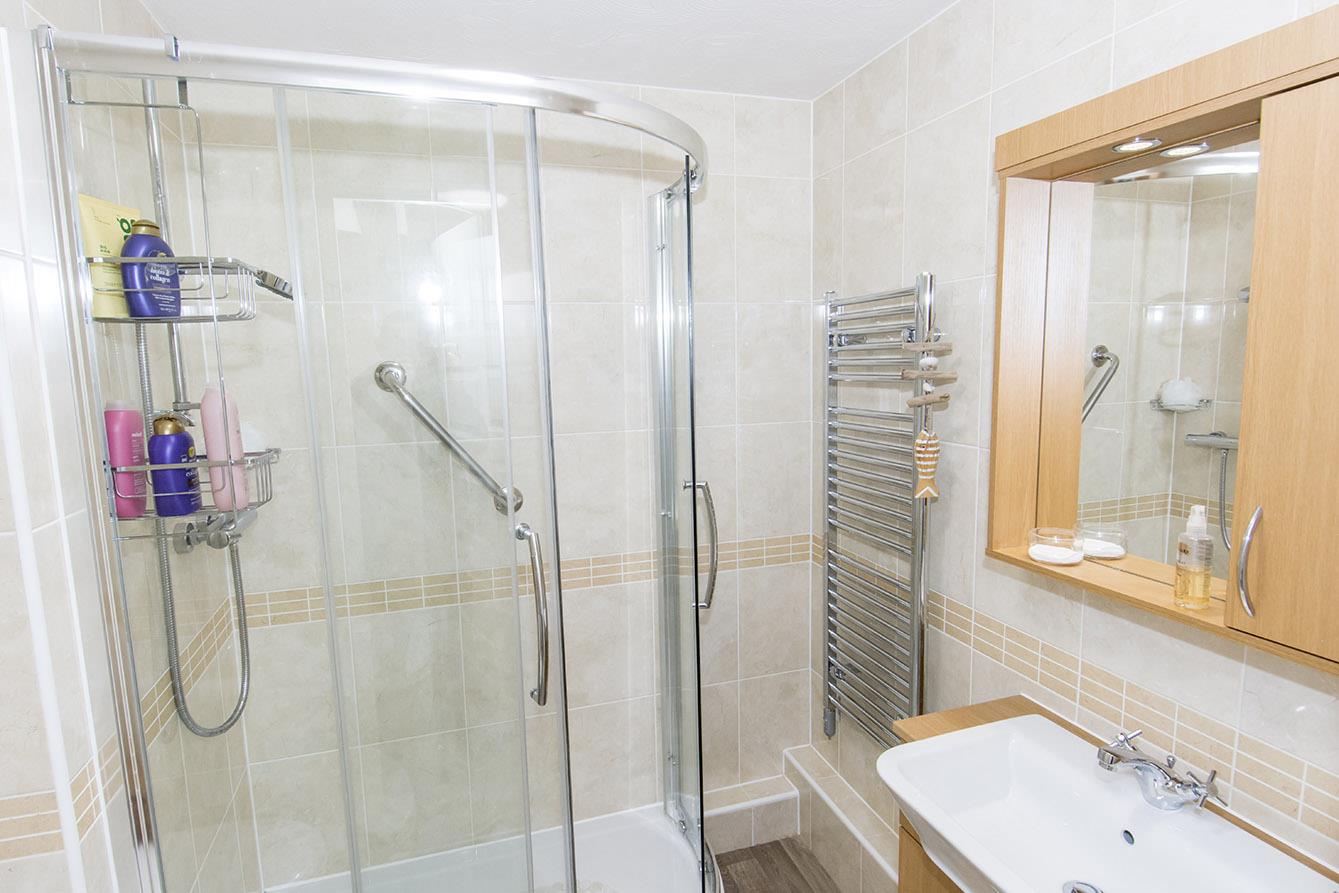 Shower Room - 2.06m x 1.65m (6'9" x 5'5") - WC. Wash hand basin over storage unit. Shower cubicle. Extractor fan. Heated towel rail. Tiled walls. Vanity unit.