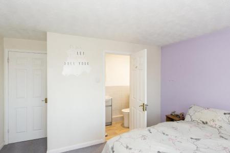 En-Suite - Opaque UPVC double glazed window to side. WC, wash hand basin and shower cubicle. Shaver point. Tiled splash backs.