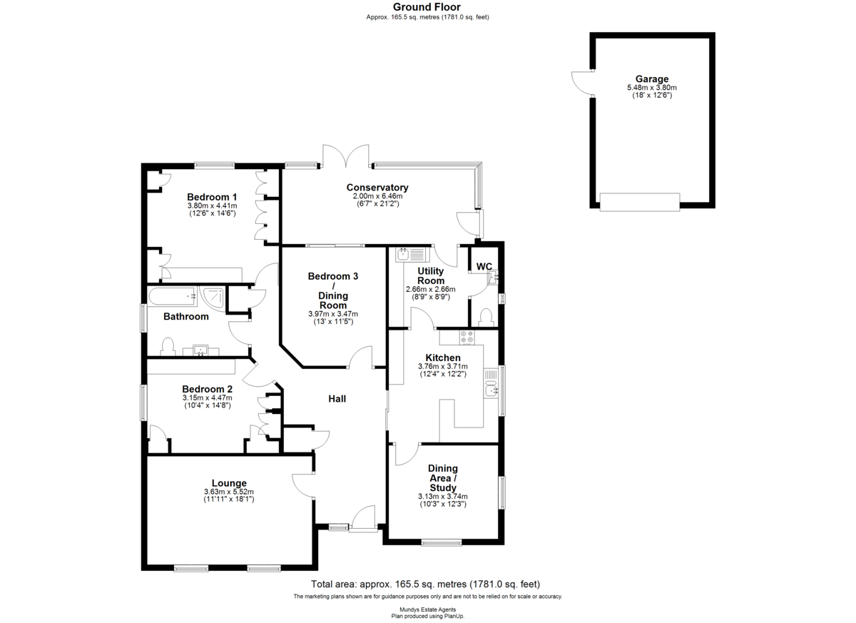 - Lounge, Dining Room / Bedroom 3, Conservatory