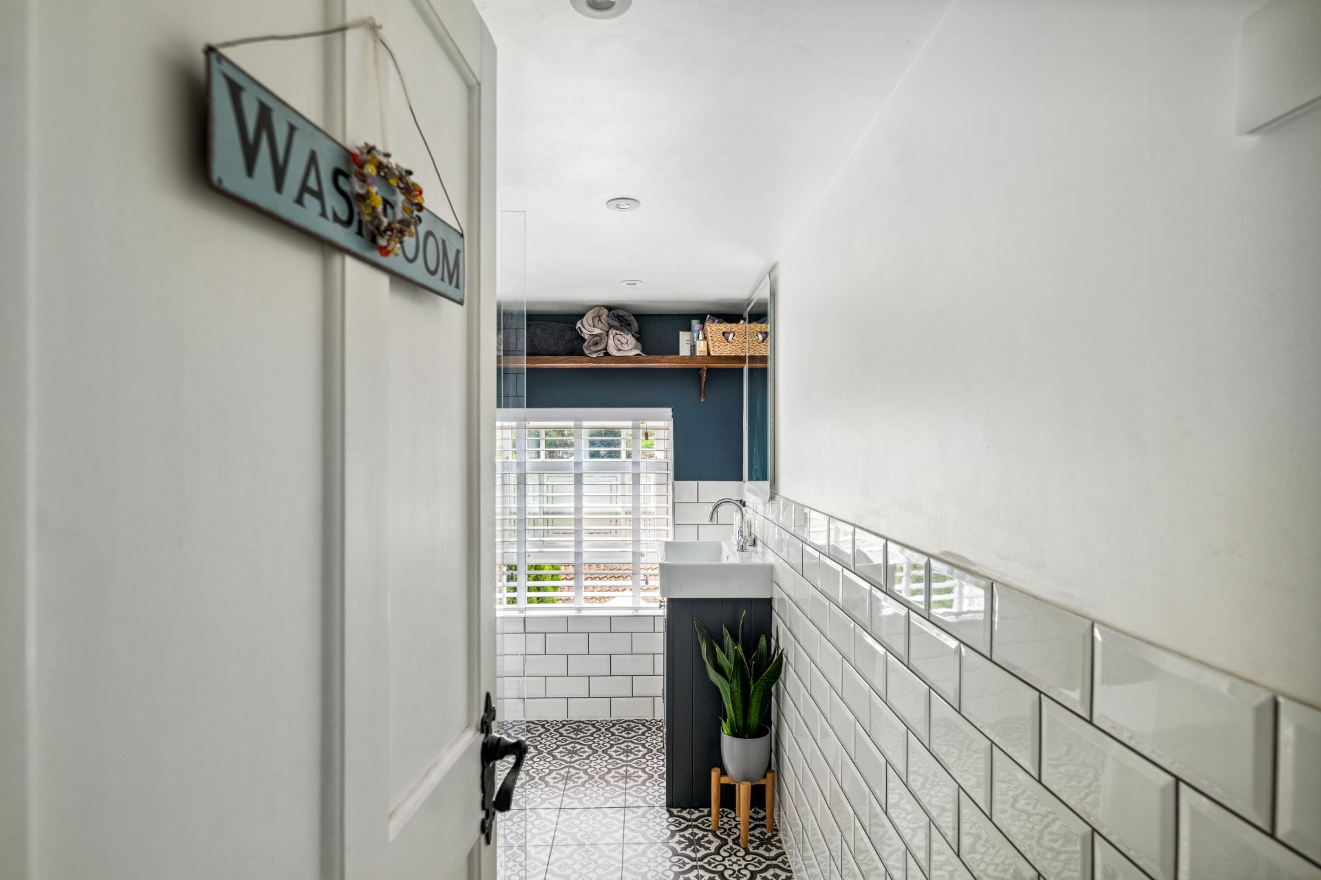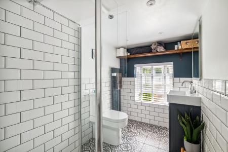 - Stylish bathroom with large walk-in shower & contemporary finish
