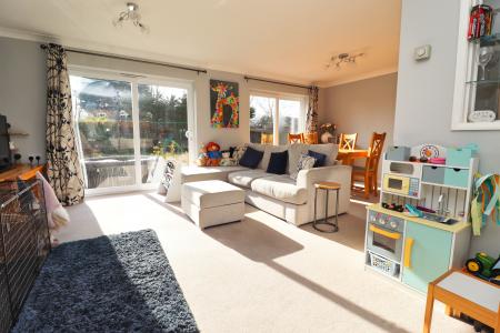 LOUNGE/DINER 16' 11" x 20' 5" (5.18m x 6.23m) With double glazed picture window to the front aspect, two double glazed sliding patio doors to the rear garden, log burner set within a feature fireplace and a radiator.