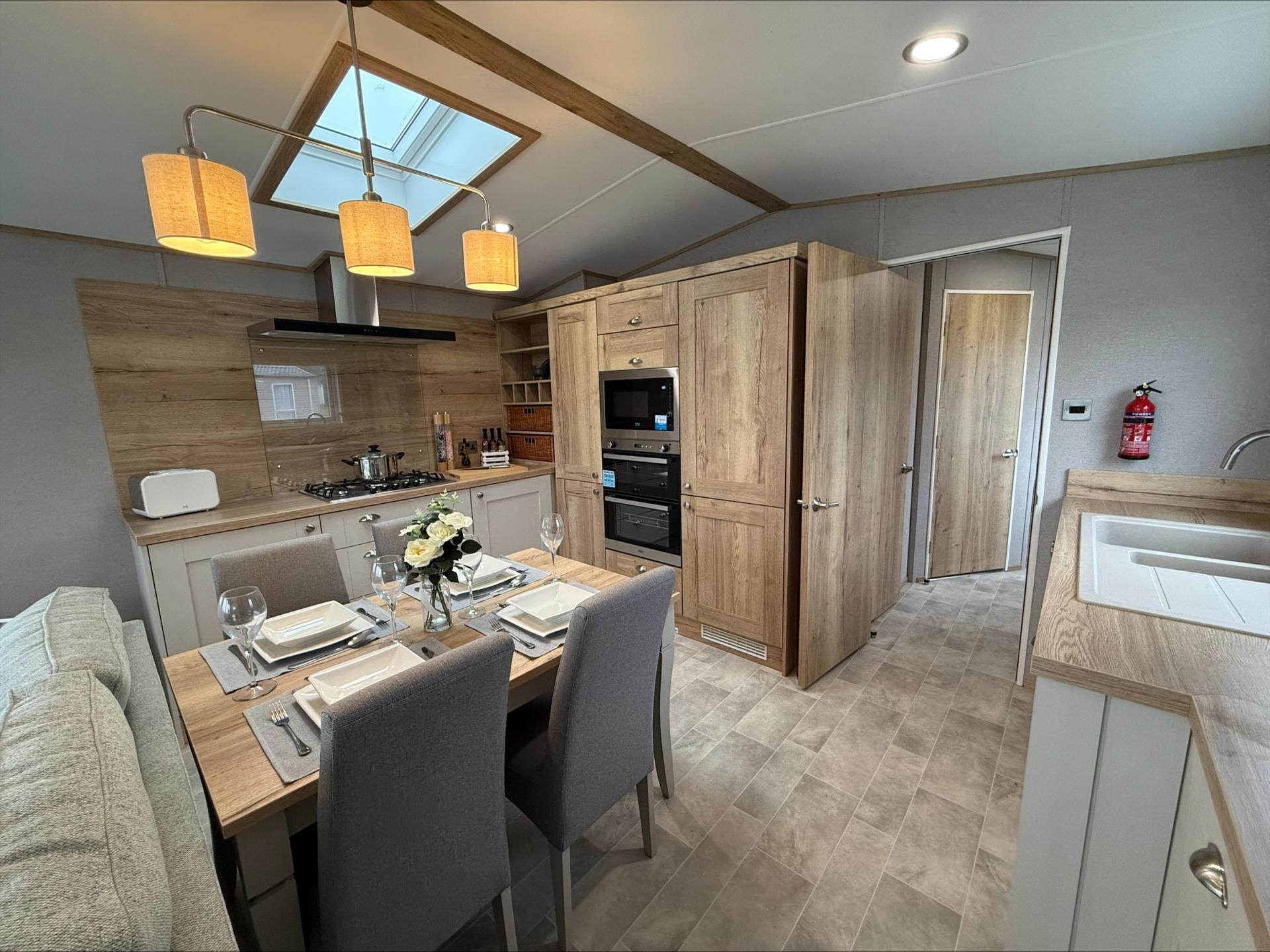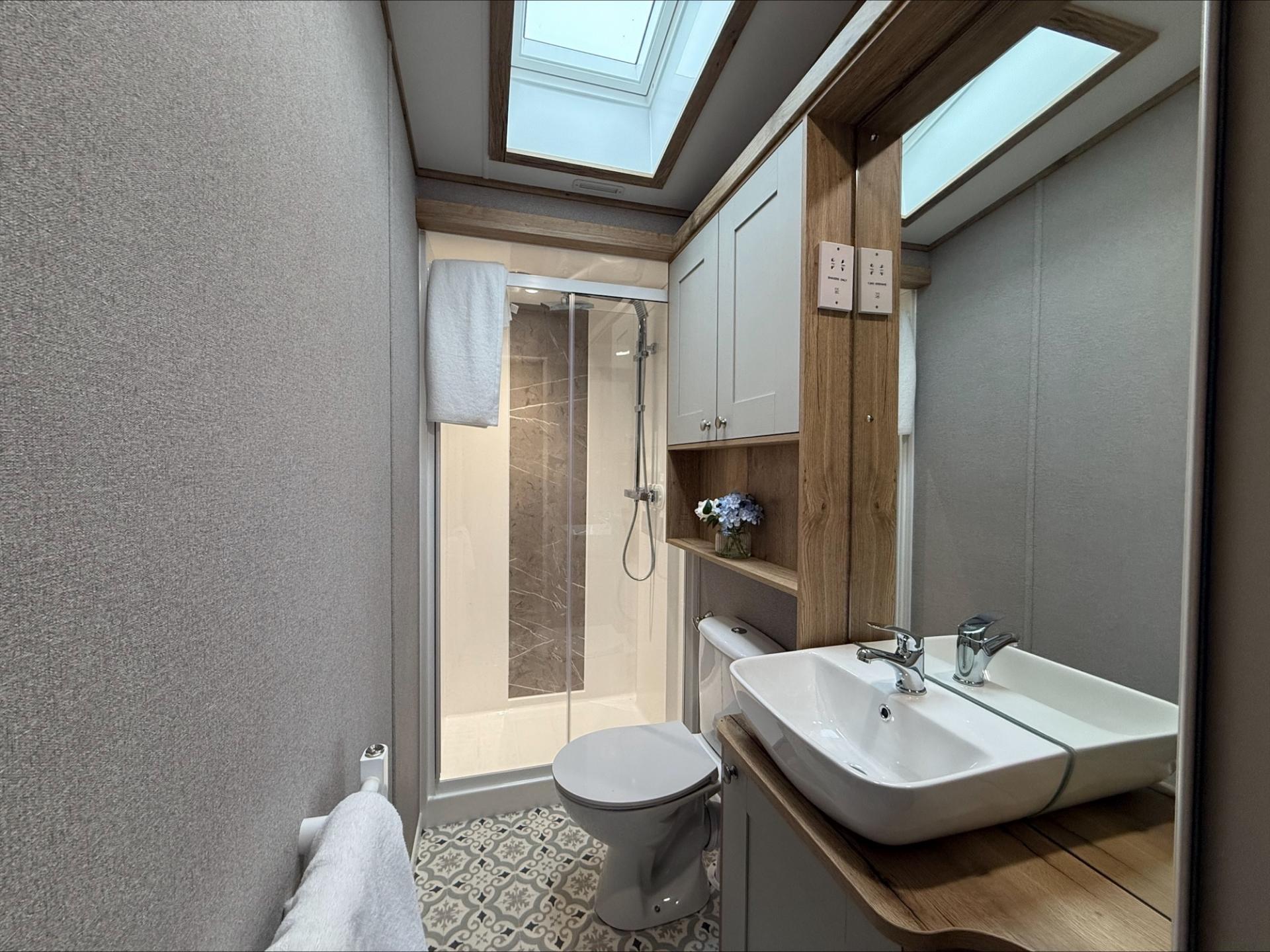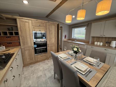 Inside, you'll find a modern kitchen with a dishwasher and washing machine, along with two bathrooms, both with showers. The lodge also includes decking, allowing you to make the most of its stunning lakeview pitch.