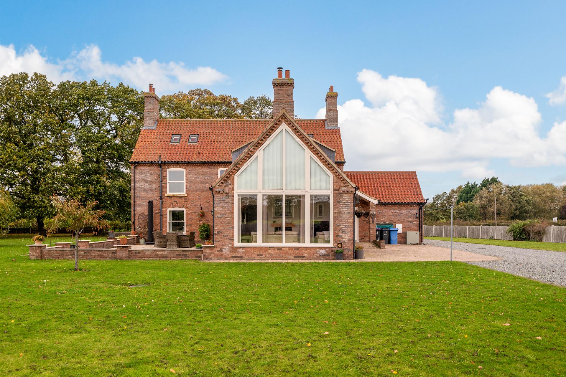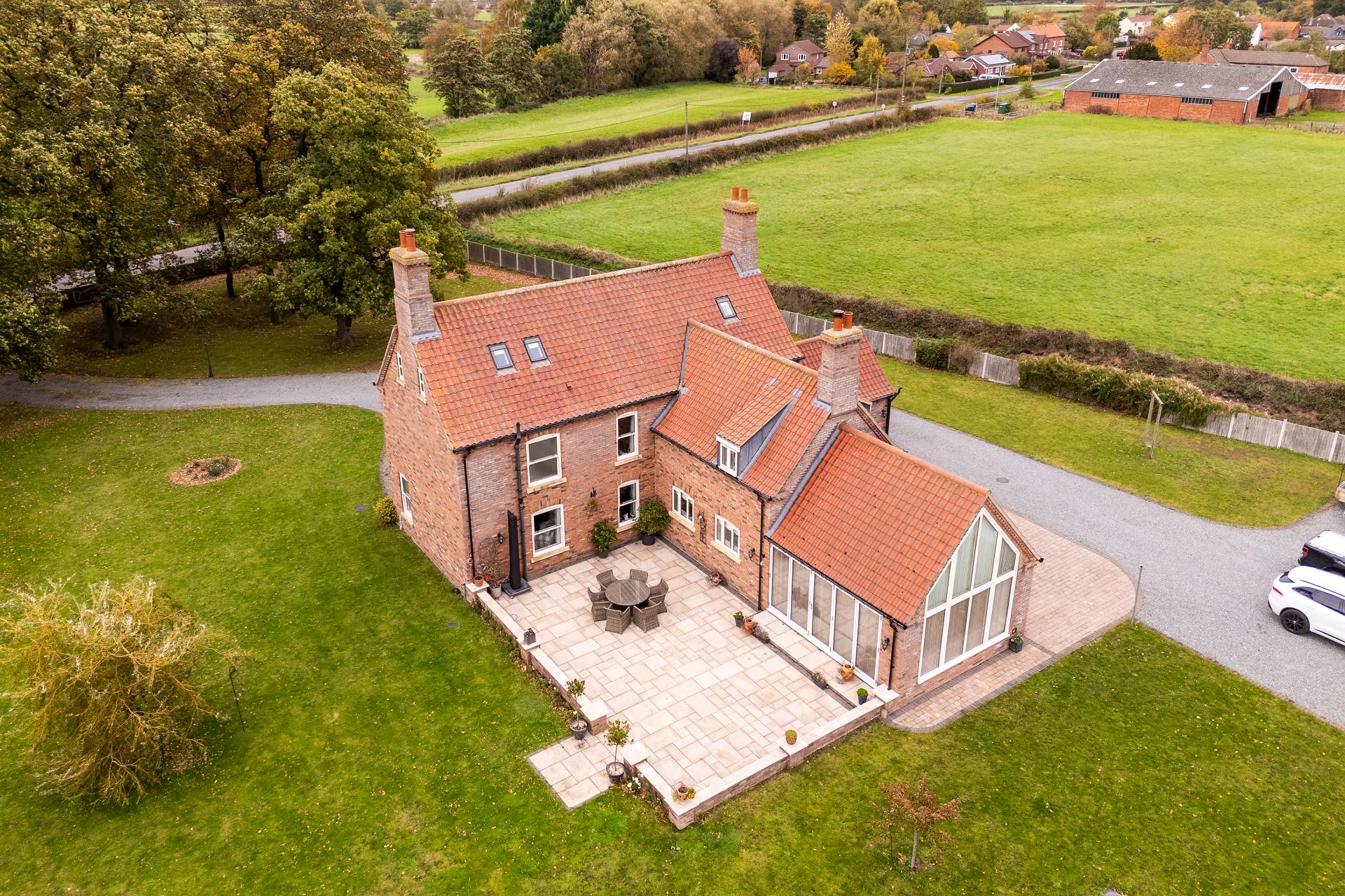 - Private gated entrance, sweeping driveway and countryside views to the side and rear