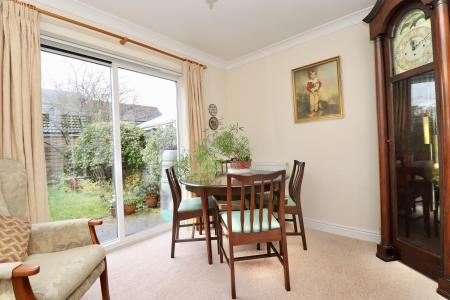 - Enclosed rear garden with patio seating area and lawn with flower beds