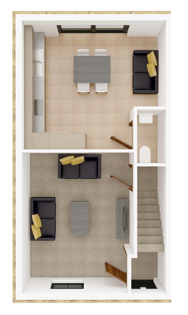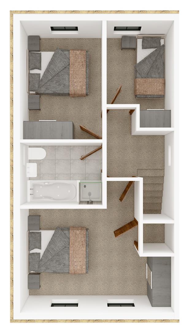 The Allium - The Allium is perfect for first time buyers and those looking to downsize without sacrificing space. The compact yet spacious home offers two to three bedrooms catering to a variety of lifestyle needs. As you step inside, you are greeted by a staircase and a door leading to the living room, which features a convenient understairs storage. At the rear of the property, a bright, open plan kitchen and dining area awaits, complete with bi folding doors that open to a full turfed garden and patio area. A handy W.C. completes the ground floor. Upstairs, you will find two spacious double bedrooms and a partially tiled family bathroom with a bath and shower over. The Allium also includes a versatile third bedroom that could also serve as a study or dressing room. Two dedicated off road parking space is provided for convenience.