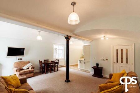 The eye-catching centrepiece of this unique property is the expansive living space which has the versatility to be used for a variety reasons. As you proceed to walk through the grand front entrance and into the main foyer your eyes immediately become drawn to the high ceilings measuring up to 4.71m in height with medieval styled chanteclers providing ample light to radiate the room. The foyer can be used as a reception room/lounge with its fitted multi-fuel stove burner, TV sockets and abundance of space it provides for furniture. Within there is a lift which can take you to the remaining floors this property has to offer.