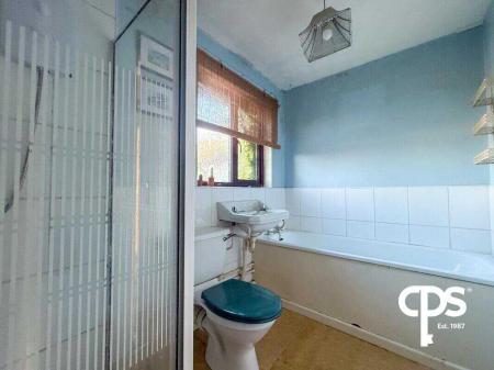 Family bathroom comprising a separate shower and bath, WC, wash hand basin, and radiator.