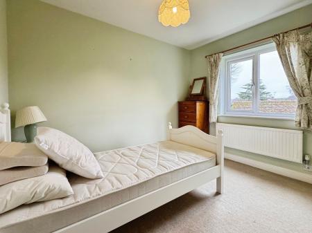 The first floor provides four bedrooms, including two comfortable doubles and two well-proportioned single rooms. One of the double bedrooms benefits from fitted wardrobes and an en-suite shower room, while another enjoys views over the rear garden and surrounding countryside. A family shower room and airing cupboard also serve this floor.