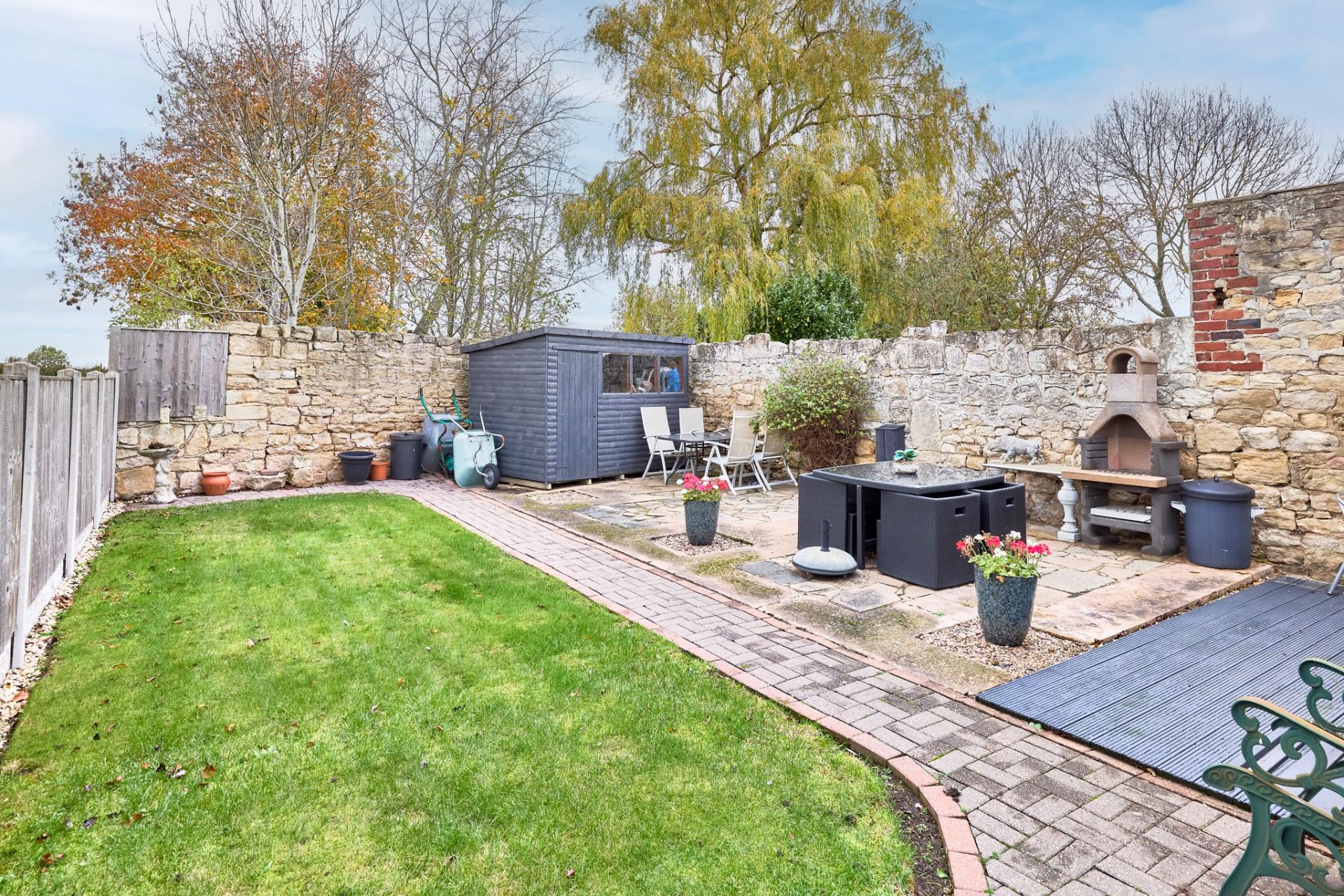- Beautiful Split Gardens with Stone Boundary Walls, Patio and Decking Areas