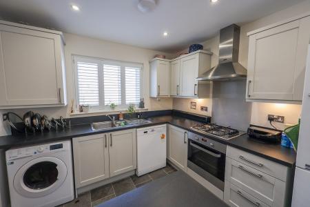 4.92m x 3.9m (16' 2" x 12' 10") max.A well-fitted kitchen featuring light grey fronted units, with space and plumbing for a dishwasher and washing machine. There is a wall-mounted gas-fired boiler, concealed within a cupboard, supplying radiators and hot water. The kitchen also benefits from a built-in electric oven with a four-ring gas hob and stainless steel extractor over with glass splashback, a breakfast bar with additional storage, and space for a fridge/freezer. Further features include low voltage lighting and an air recirculation unit.