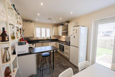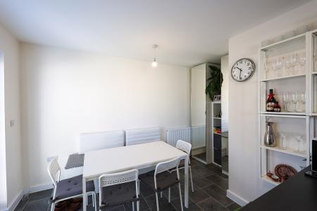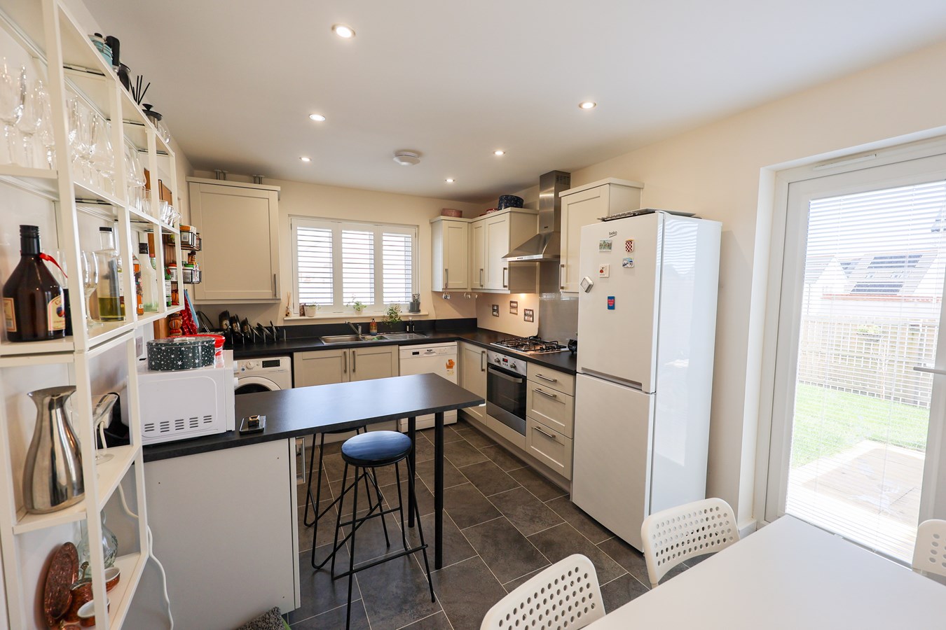 A generous recessed area offers excellent space for additional storage or fitted units, while stylish French doors with integrated blinds provide natural light and provide seamless access to the garden?perfect for indoor-outdoor living and entertaining.