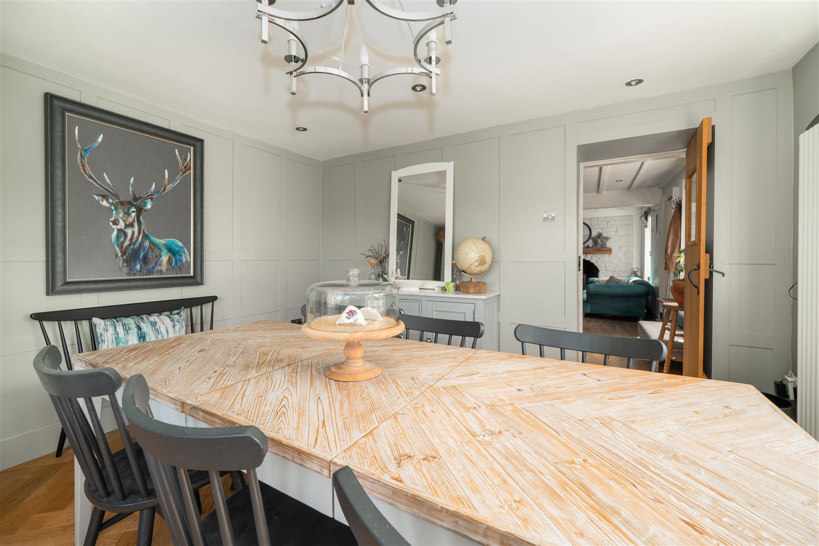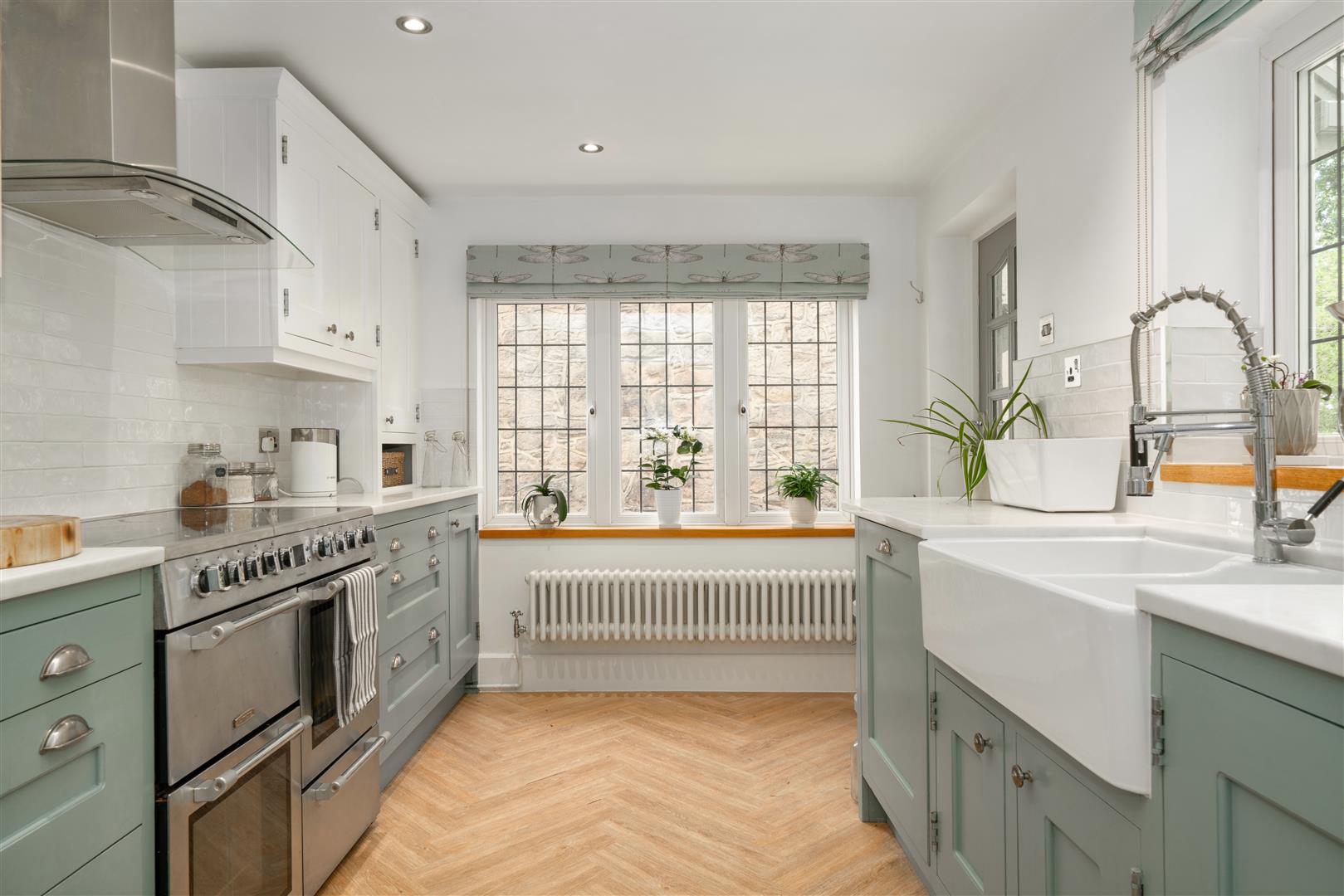 The ground floor comprises; a well proportioned living room with log burning stove, dual aspect dining room showcasing the beautiful views, and modern galley kitchen with Belfast sink, integrated appliances and access onto the rear.