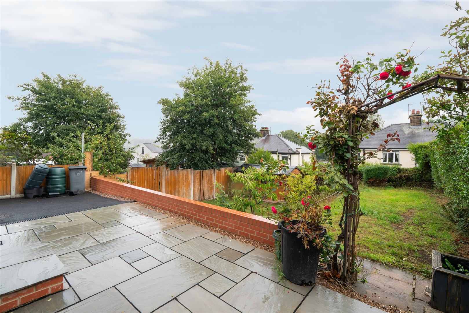 - Patio seating area and lawned garden