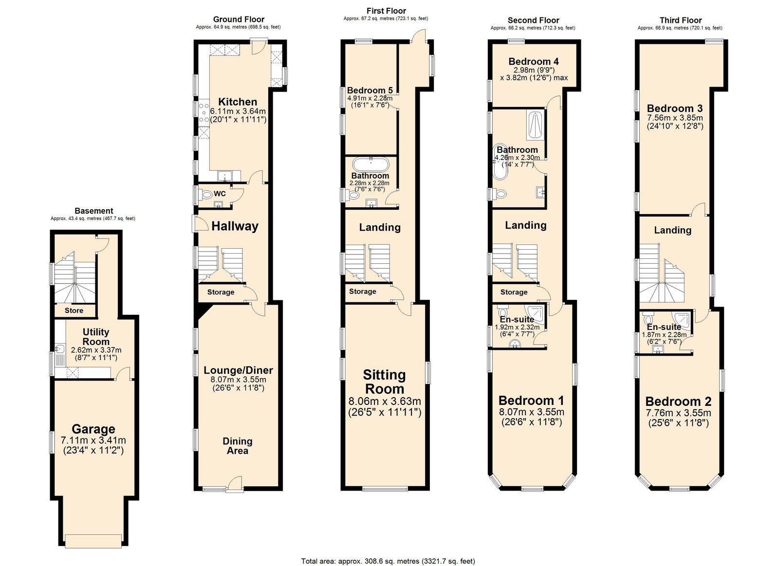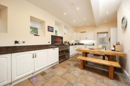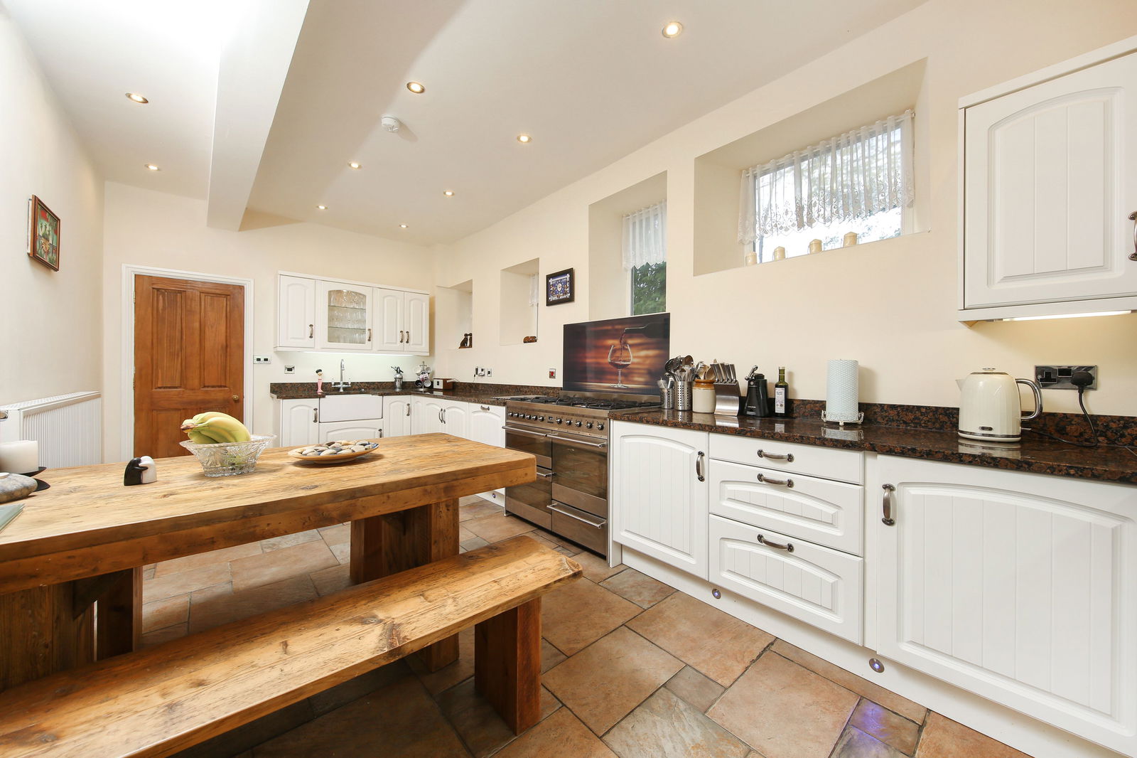 - Large ground floor living room with log burner and spacious dining kitchen.
