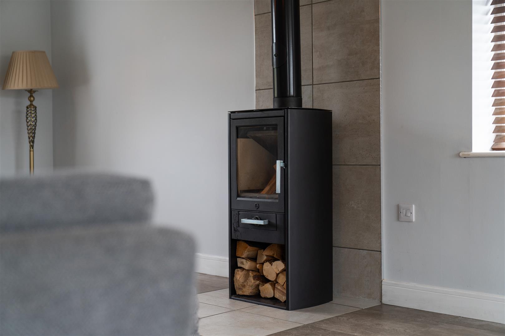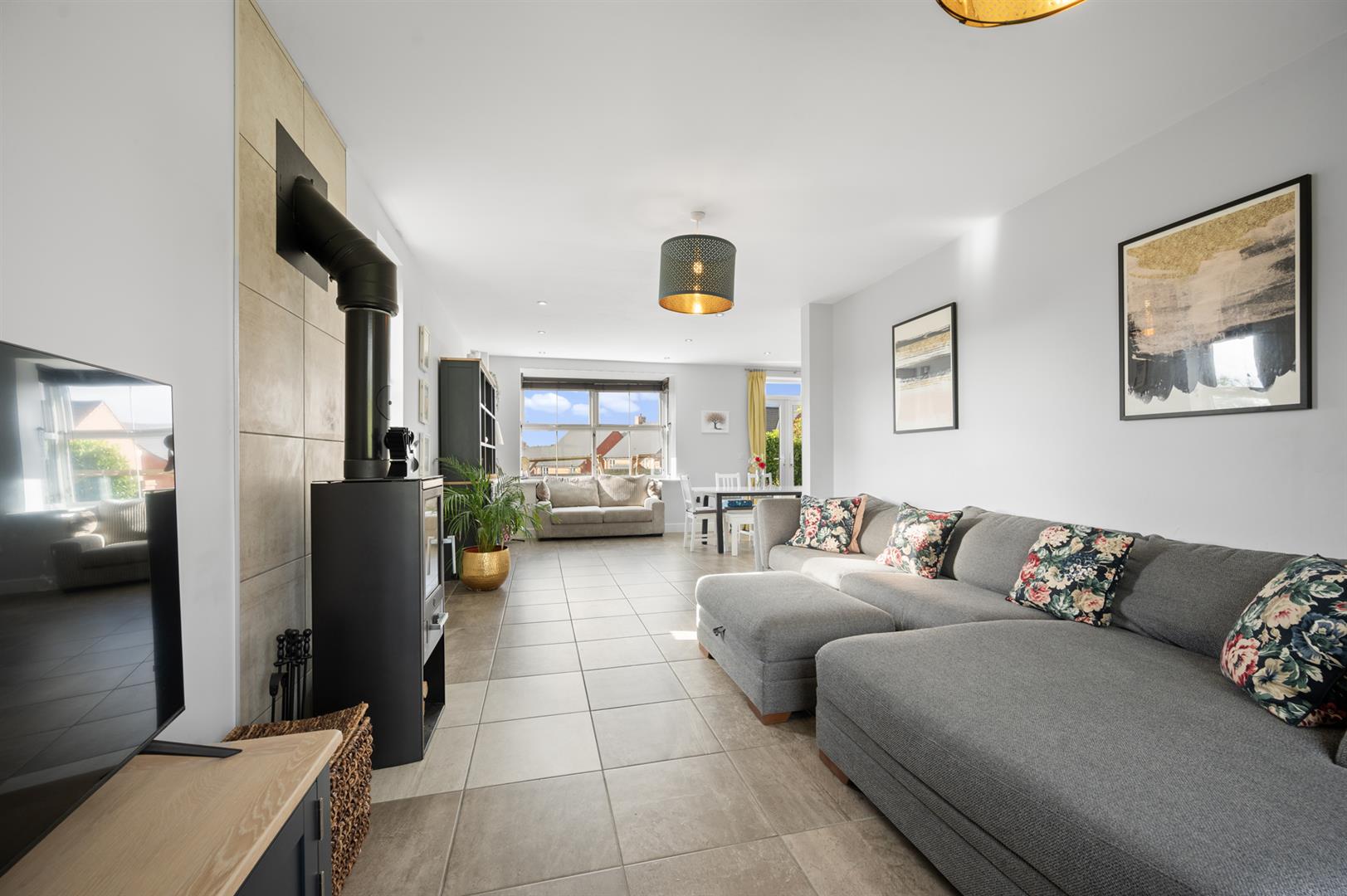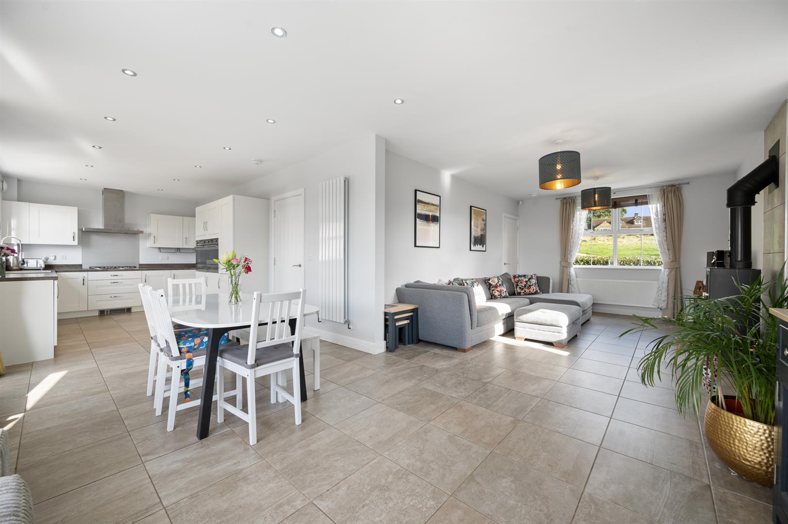 The ground floor comprises; Entrance porch and inner hallway, open plan living space with log burning stove, dining kitchen with bay window, integrated appliances and patio doors to the rear garden, separate utility room, study/snug, downstairs WC.